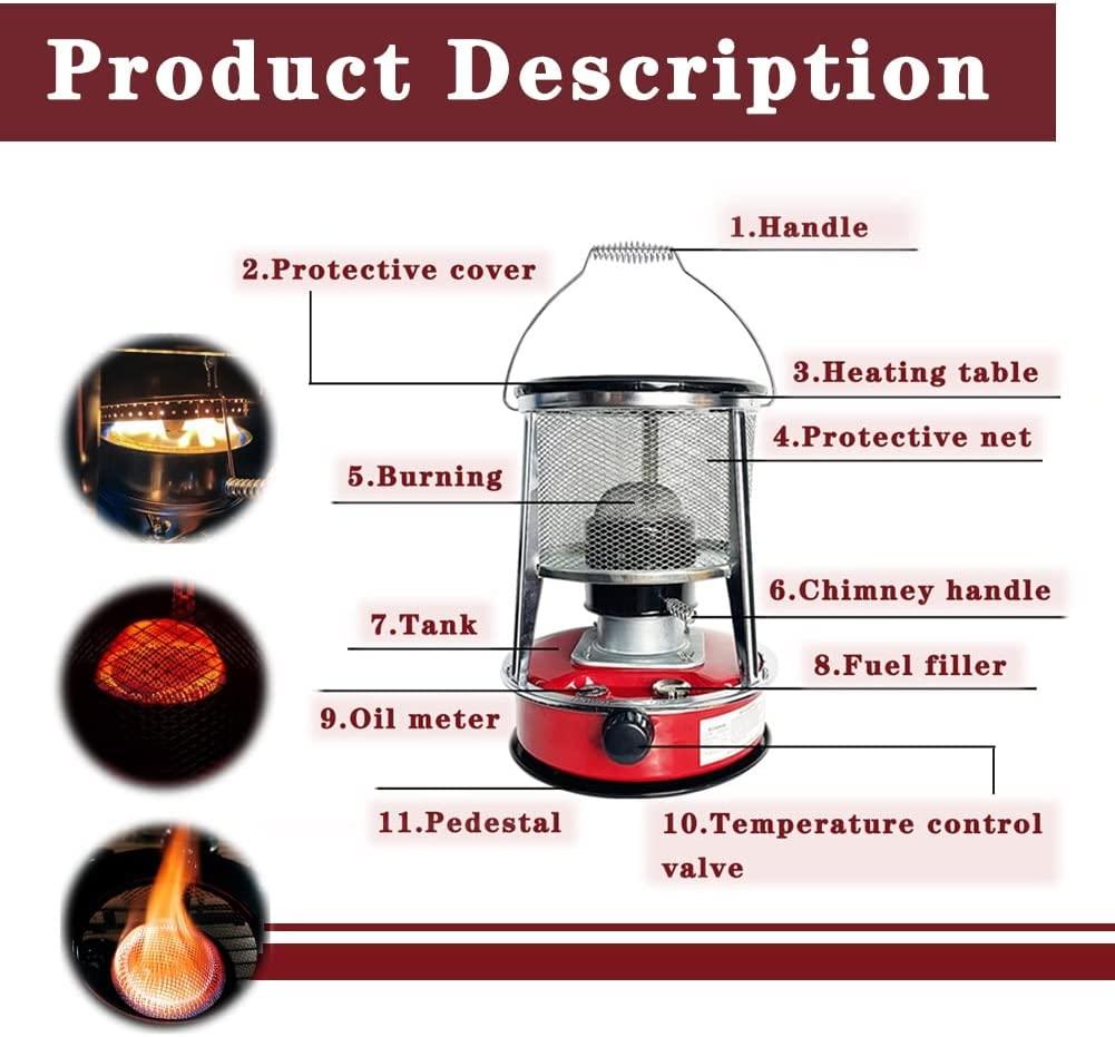 Efficient Kerosene Stove Camping Heater Stove with Cooking System Space Heater 4.6L Large Capacity Tent Heater Indoor Kerosene Heater for Camping Hiking Survival Table (Color : Red-4.6L)