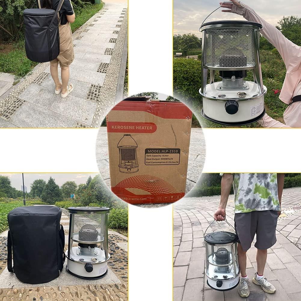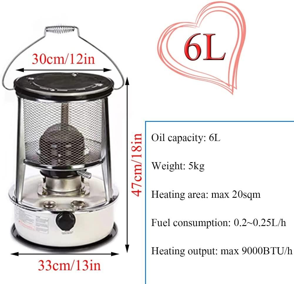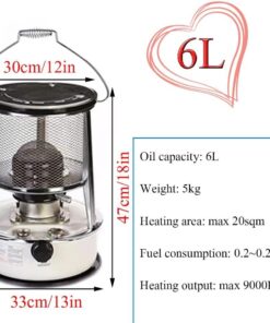 - ☞ Kerosene stove size: 6L kerosene stove with a size of 47x33x33cm (18x13x13in), with a storage bag for easy portability. Also comes with accessories: gloves x2, oil funnel, oil pump, wick x6.