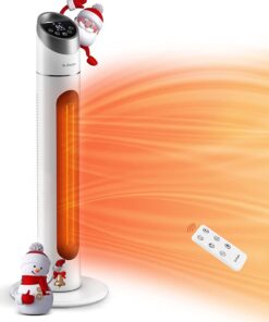 - EASY TO MOVE AROUND – The easy-to-carry handle at the top of this electric space heater helps you carry around wherever you want to warm up. Portable tower heater designed in portable size 34.5 in (H) * 12.4 in (W) which different from other small space heater, avoid the embarrassment of blowing to the feet without warming the whole body, just put this space heater with remote by your feet on the floor or bedside to get warm!