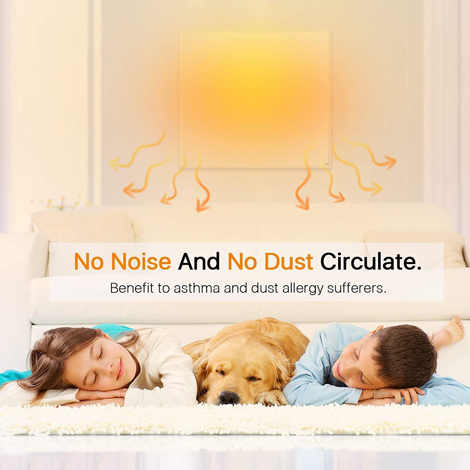 - 【PANEL HEATER SPECS】350 Watts, 1200 BTU, 120 Volts, 3 Amps. Most efficient in a 110 sq. ft. room. Measures 24 x 24 x 1.8inches. 7.7 pounds. We offer 5 Years Manufacturer Warranty!Please rest assured to buy! For healthy consideration of every family member, Our panel heater is your first choice.