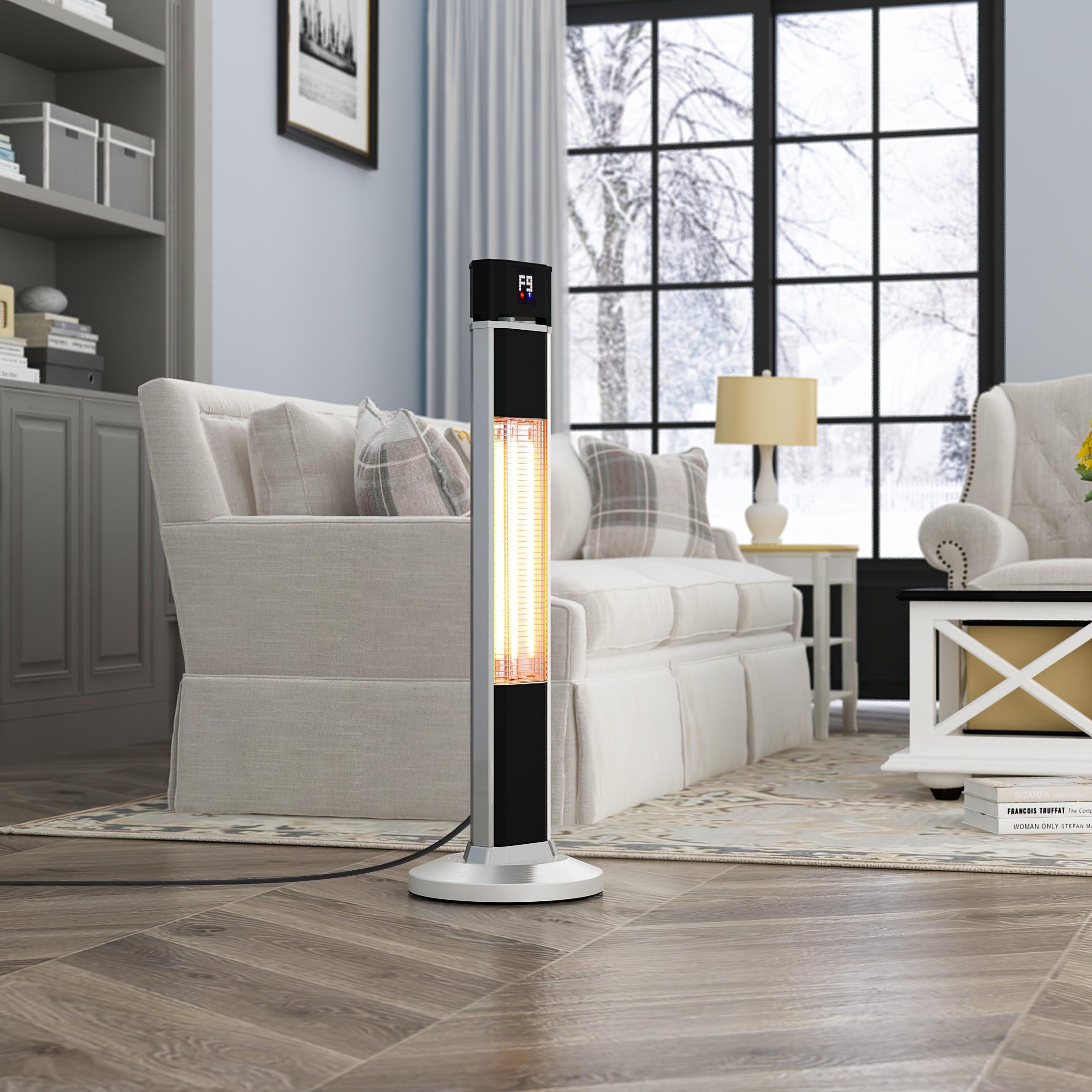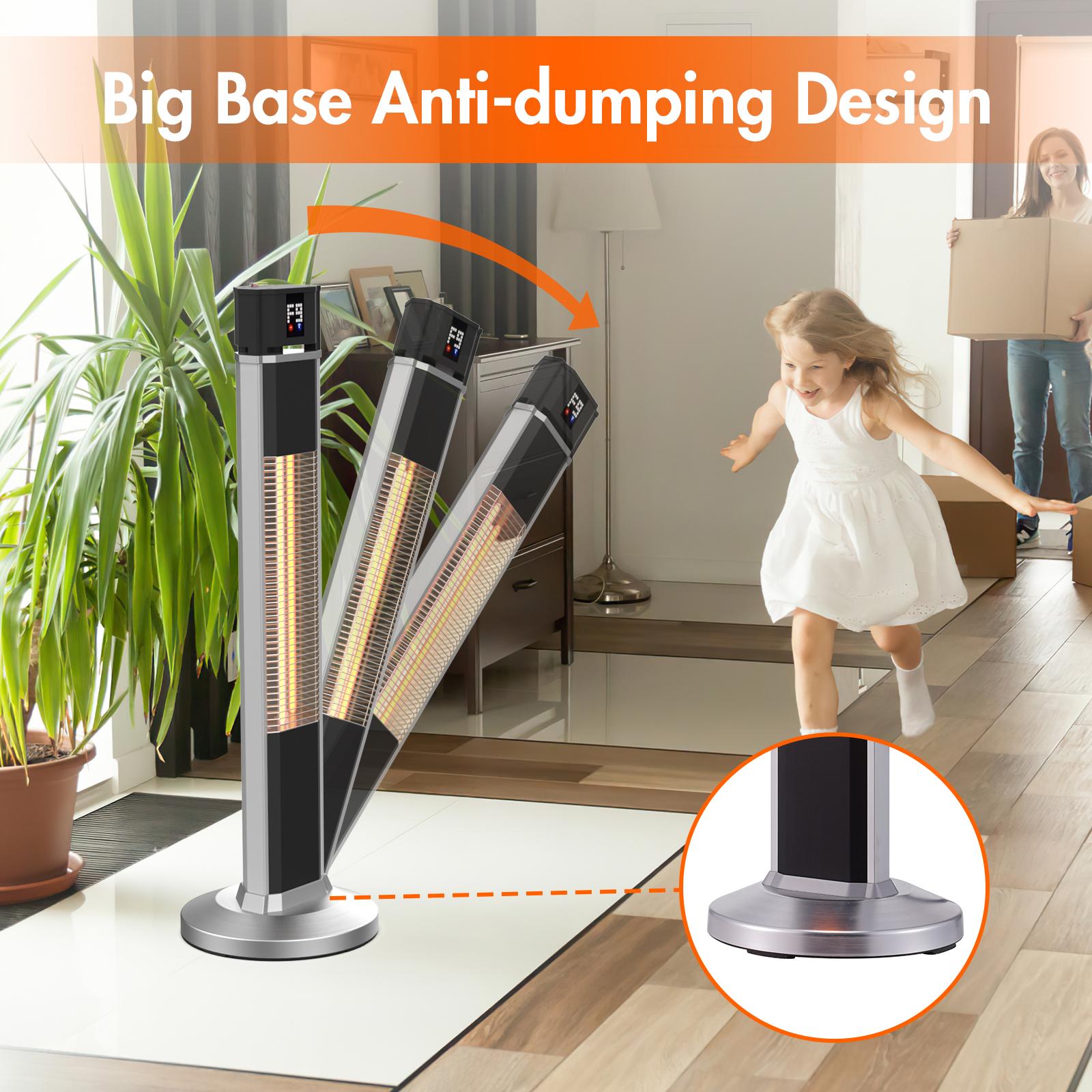 Made of V0 flame-retardant materials with multiple safety features including built-in smart tip-over protection, overheat protection, 24-hour timer, 24-hour automatic power off without interaction. Powerful 1500 W PTC ceramic heating allows this space heater to heat up in 3 seconds, suitable for warming up spaces in the home including bedrooms, basements, garages, living rooms, and can also be used in offices, dorms, hot yoga studios, etc. The fan wheel uses oblique airflow technology, which effectively reduces wind noise and makes the room heater 12% quieter than traditional electric heaters. Calm airflow lets you sleep soundly and work undisturbed during the cold winter. The exclusive trackball system helps create smooth and quiet oscillation. The 70° wide-angle oscillation, with a lifespan of over 750,000 cycles, boosts heating coverage by 20%, which helps distribute the warm air more evenly towards the room’s corners. The touchscreen is placed on top of the heater for easier reach, and the remote provides full access from up to 26 feet away.