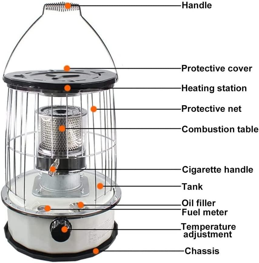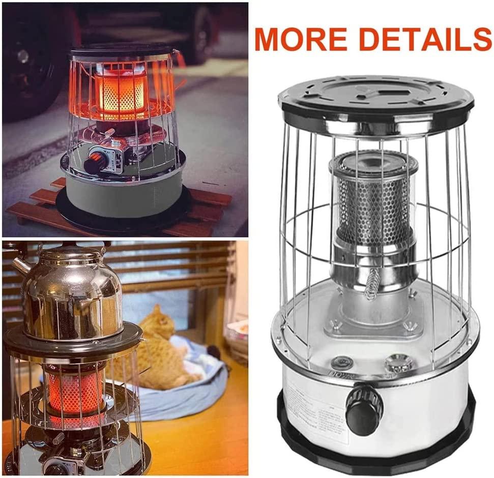 - ? Portable Kerosene Heater: Mobile heater with storage bag and spare accessories, easy to carry, easy to move and flexible to use. The heater is made of solid stainless steel, which is rust-proof and extremely durable.