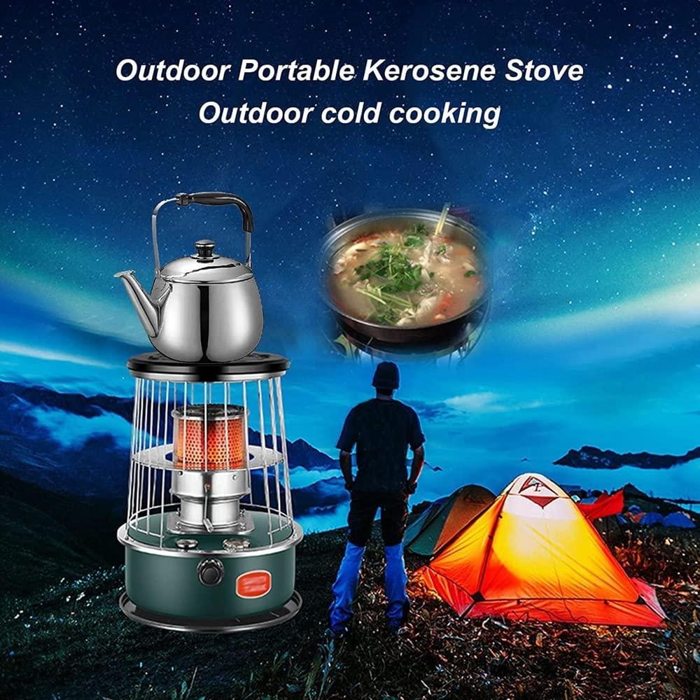 - ? Easy to use, portable handle design. The fuel gauge can check the fuel in real time, and the sealed fuel filler cap is more secure. Kerosene stove can heat, boil, cook and grill, it is a good partner for camping, picnic, travel, party.