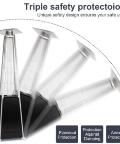 - Pyramid heater cover included: You’ll be assured a custom-like fit while fade-resistant fabric protects your pyramid heater. In windy weather, please move the heater to the house to avoid unnecessary losses.