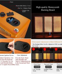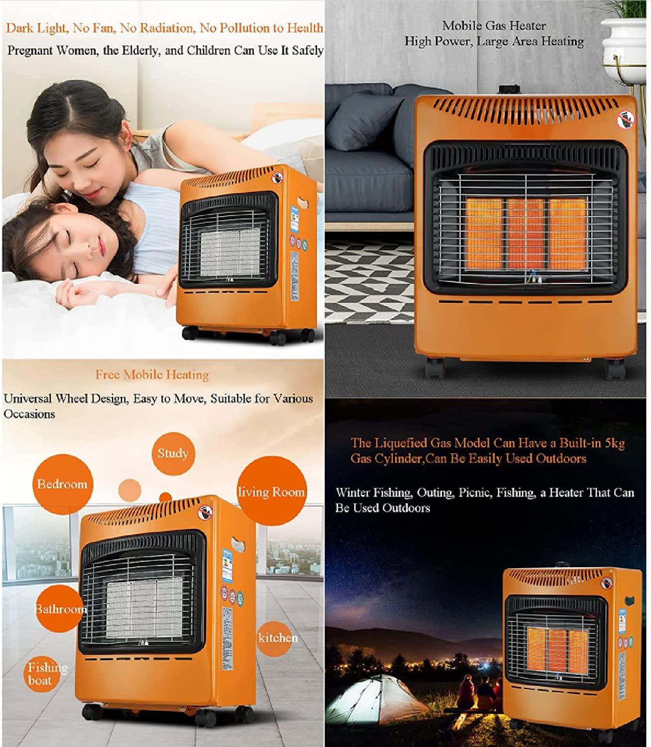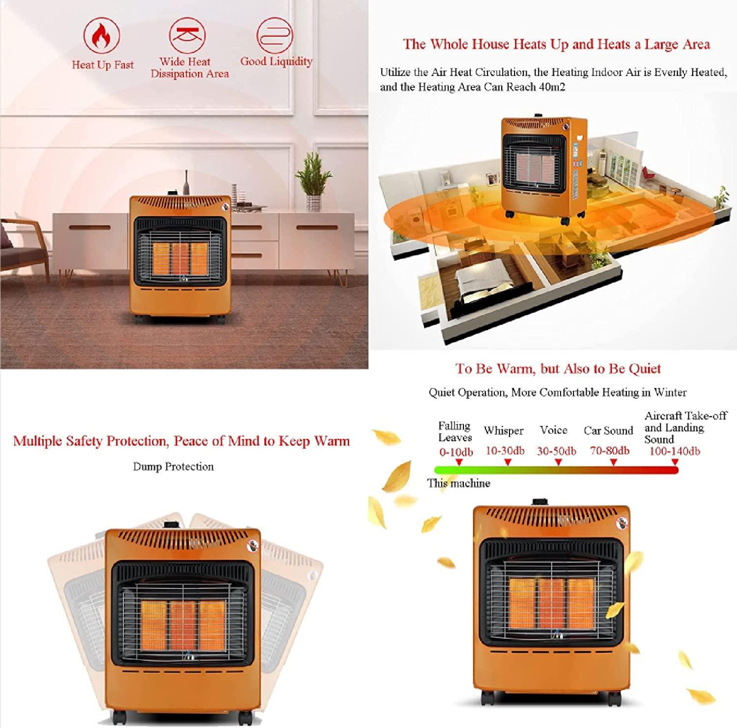 Gas Heater for Interiors Including Hose 3 Heating Levels Up To Gas Fan Heater 4200-Ready for Immediate Use Infrared Ceramic Burner 40 M2 Overturn Protection for Bedroom, Study, Living Room,Natural gas