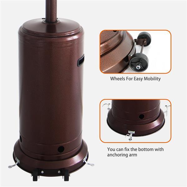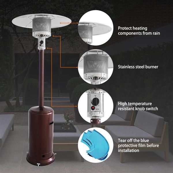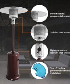 5.【HIGH QUALITY MATERIAL:】 The patio heater use high quality stainless steel of the heating element which isn’t easy to melt/burn off, and the outdoor heater fire can’t come through the grating and melted the rim, the gas patio heater has ETL certification, which can make sure the quality is excellent. Please pay attention that use the heater outside