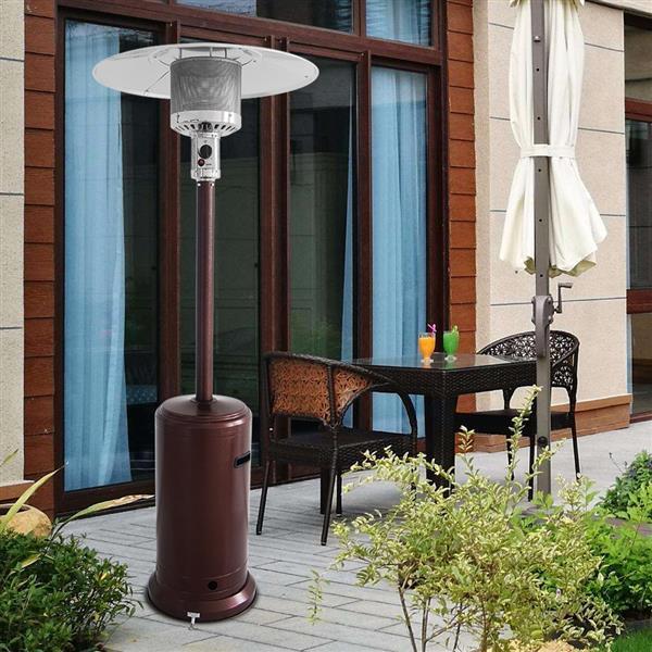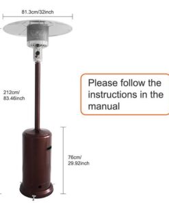 - 83-inch propane patio heater with 32-inch reflector produces an impressive heat output of 46,000 BTU in a circle. Great heating solution and perfect alternative to a fire pit to heat up your garden parties and keep your guests warm when the temperature starts to drop
