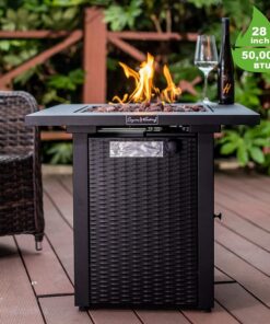 1.Product Dimensions & Unique Design – 28” L x 28” W x 24” H, nice and compact for the backyard. With powder coated iron material and sleeker design, our fire table brings ambiance of having a glowing fire which makes your yard warm and inviting. The perfect item for cold, romantic evenings.