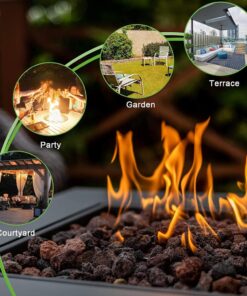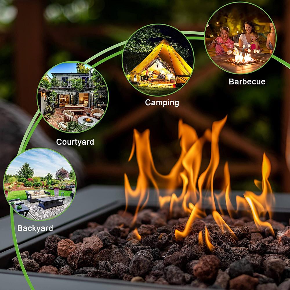 4.Package Includes – 3ft hose with regulator, 4 pounds lava stones as standard. You can also buy more lava stones or find fire glass in our store if you want to replace the original ones.
