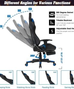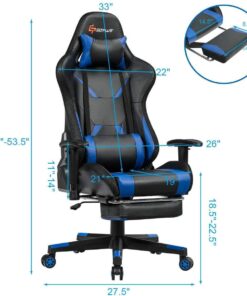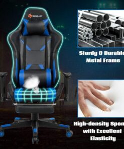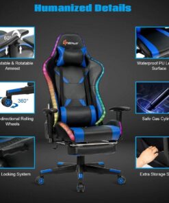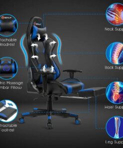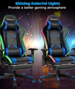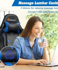 Goplus Massage Gaming Chair with RGB Light, Reclining Backrest Handrails and Seat Height Adjustment Racing Computer Office Chair with Footrest, Ergonomic High Back PU Swivel Game Chair