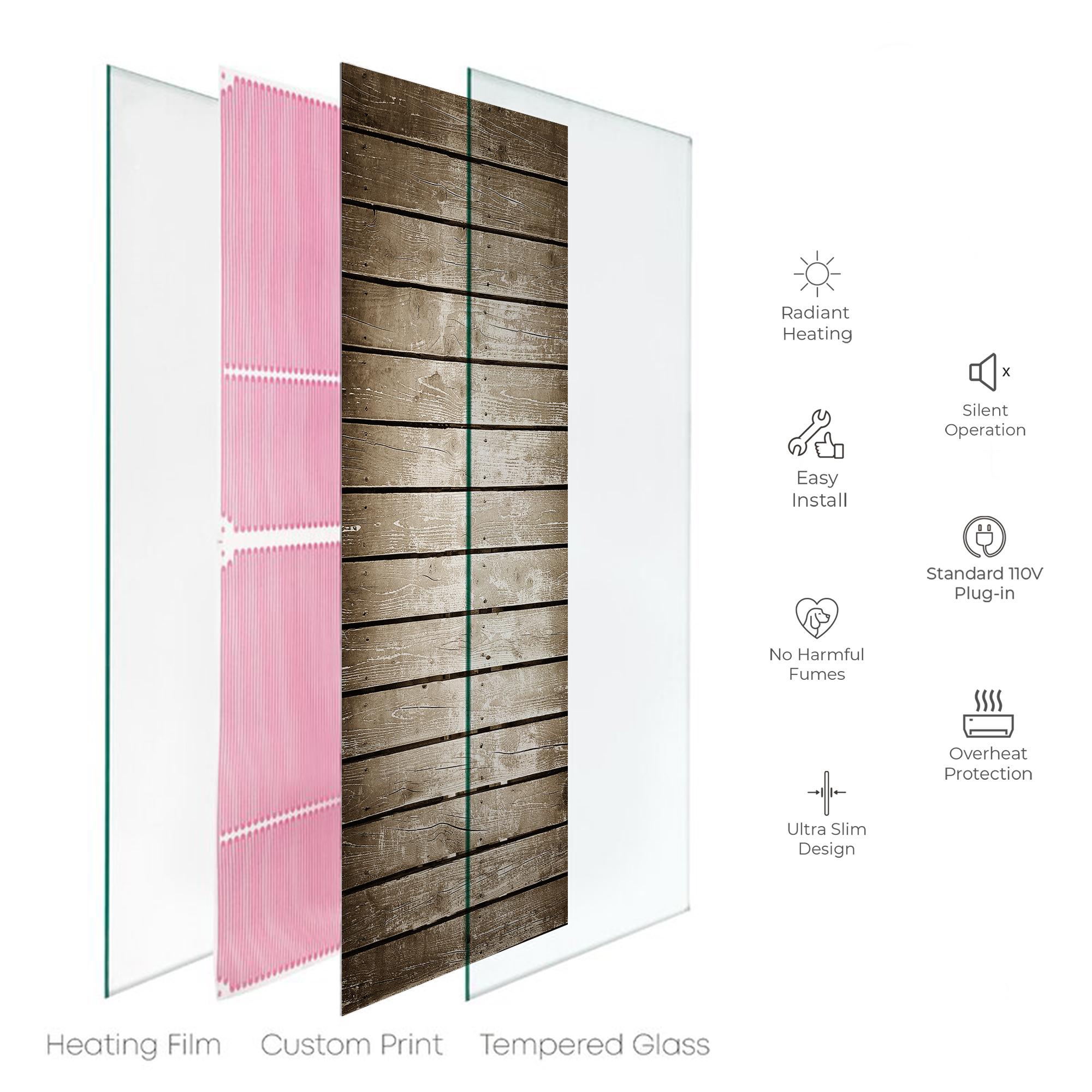 The Heat storm 16” x 48” premium decorative glass heat panel is a lovely decoration piece to add to the decor of any home while providing gentle and energy-efficient heat to any room or workspace. Our wall-mounted glass mural heaters come in a wide array of high-definition photo art to fit the look or style of any room. Heat storm wall-mounted glass panel heaters use energy-efficient and highly effective radiant heat to cut down on power consumption and are made without moving components to add to the long life of this beautiful unit. The heater is completely silent and has built-in safety features to provide a quiet, but safe heat. The glass heaters are ideal for a 200 sq. foot room.