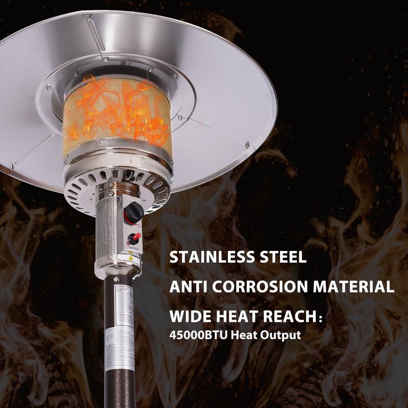 1.Quality Material Design:The heater is made of high quality stainless steel and bronze, and with a double-layer protective mesh, it’s designed to Provide and maintain optimal durability and perfectly complement your patio furniture and outdoor decor.