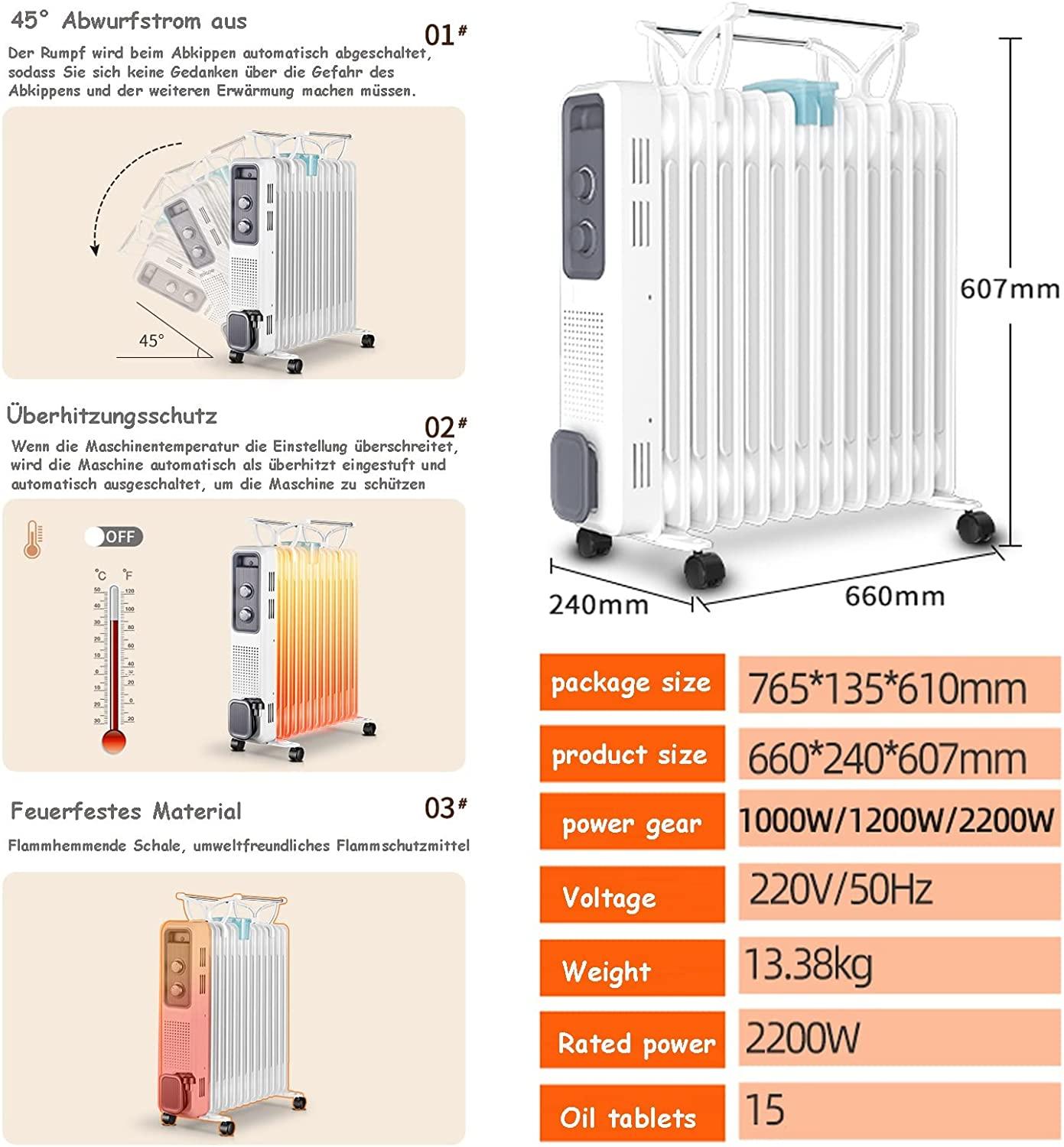 - High quality – alloy conductor material, double U-shaped tube heater, dual energy, longer-lasting heat. In winter and autumn, the mobile radiant heater with three powerful heating levels provides quick, long-lasting heat