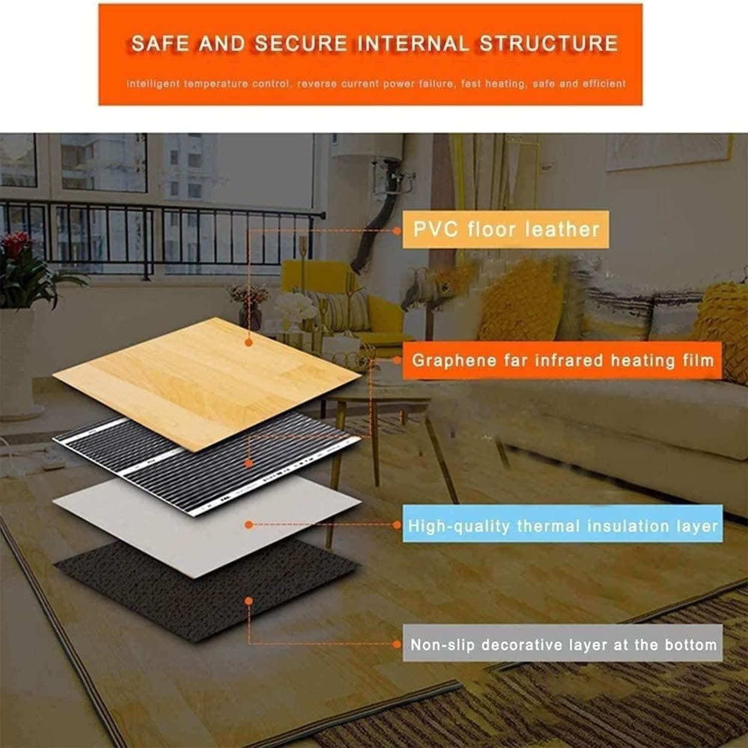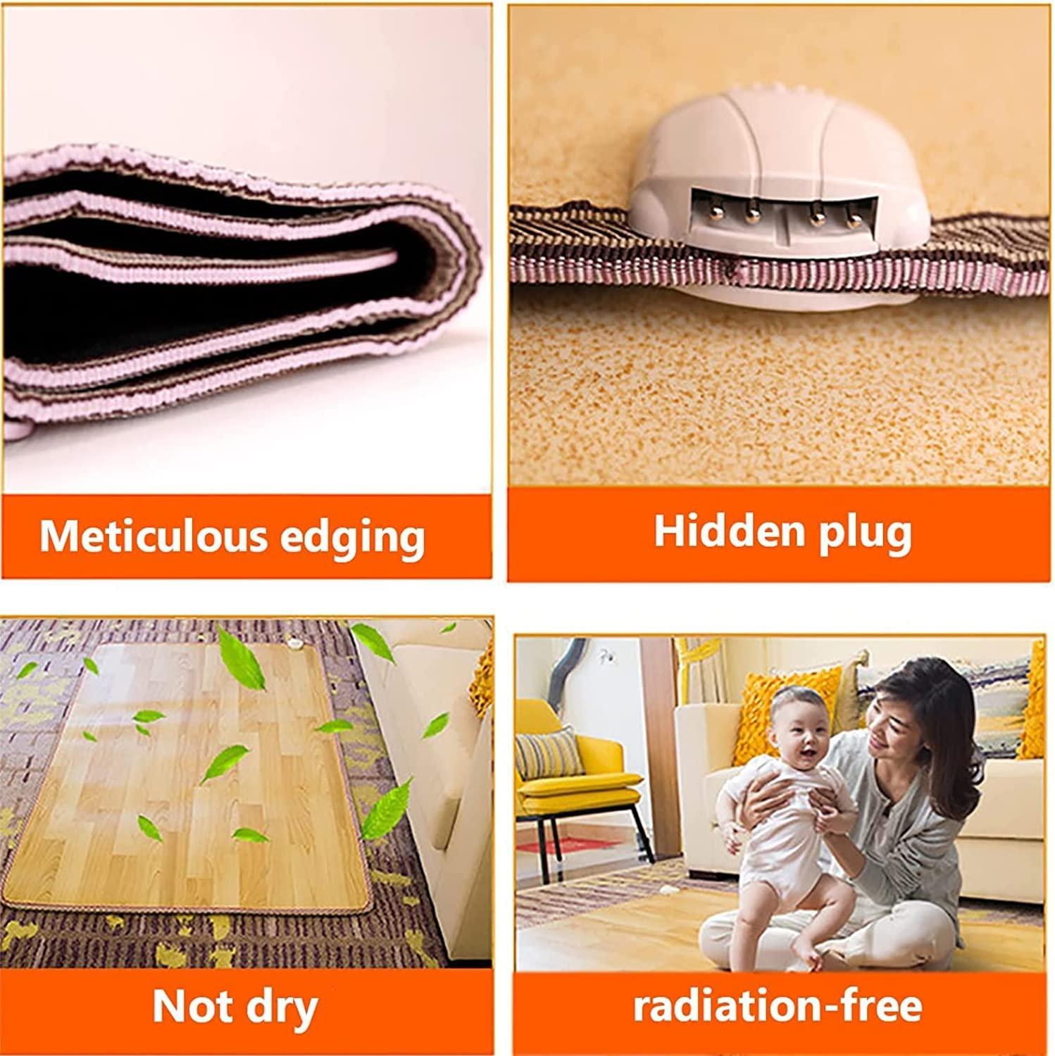 Household Graphene Electric Heating Floor Mat, Electric Heating Pad for Feet, Electric Blankets with Temperature Adjustment, Overheating Protection,100 * 100cm