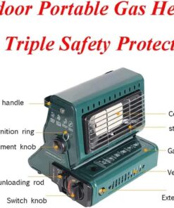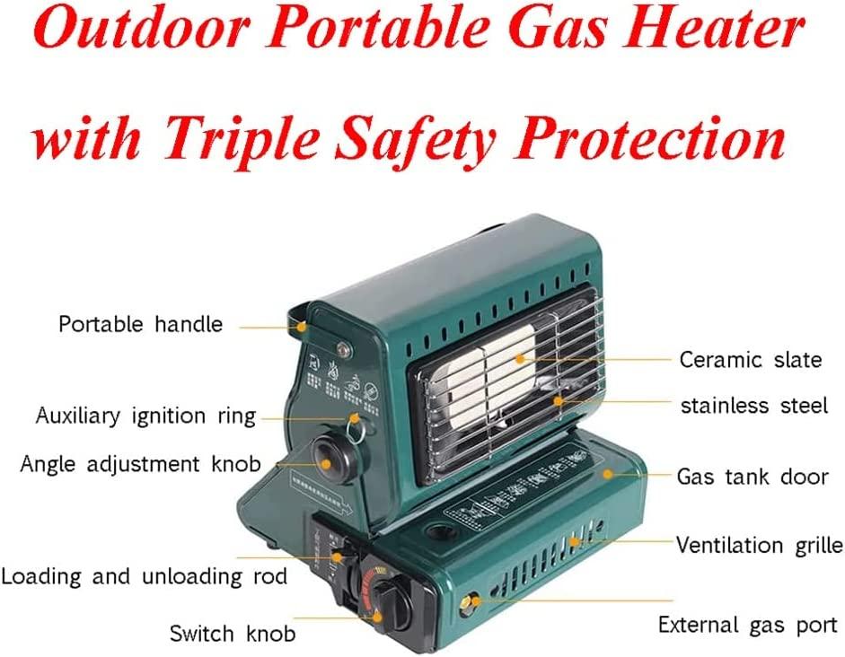 - ★ Compact gas heater is easy to carry with a handle during outdoor camping. Also gas heater is easy to turn on, pulling the tab for speeding up air circulation, intense combustion and firepower.