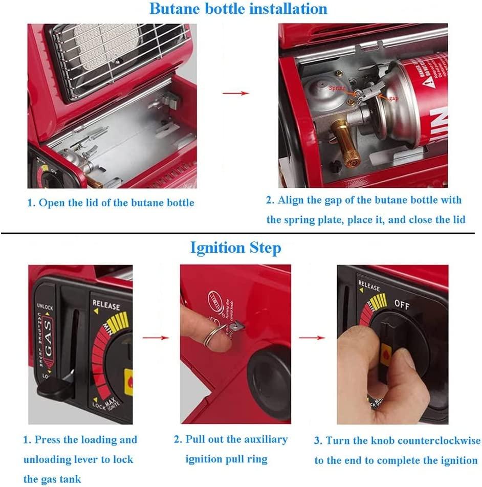 - ★ The swivel body of the butane heater allows for directional heat flow to suit your preferences, and the integrated Piezo switch ensures quick start-up, and no matches are needed to light the heater.
