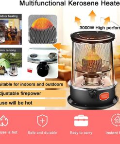 Indoor Kerosene Stove Heater, Kerosene Heater, Indoor Mobile Heating Without Electricity, Portable Kerosene Heater, High Efficiency Kerosene Heater, Indoor Anti-Fall, with 2 Cores, 4.6L