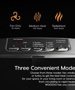 - THREE 3 FAN MODES: Fan/Medium/Turbo Max. 200 sq ft coverage From circulating air in the room to rapidly heating it; three available fan modes help enrich your environment, whether in a living room or bedroom
