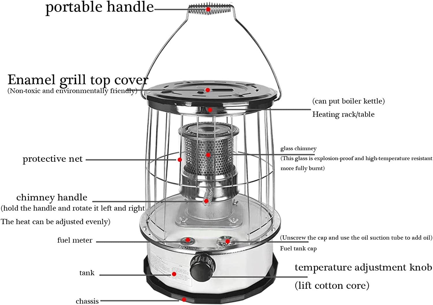 - ▽The combustion chimney made of special metal enables the kerosene to be fully burned, and the heating is faster and more efficient;