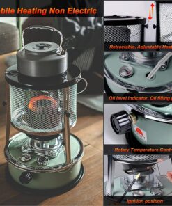- ?Portable Heater Non Electric, Instantaneous Heating: Excellent emergency heat source. All you need for a kerosene heater is kerosene and you will have plenty of heat. It will heat up in 1 second after ignition, and it will heat up instantly, and there is no need to wait for heating anytime, anywhere. Don’t worry about unexpected power outages when hurricanes, heavy rain and snow hit.
