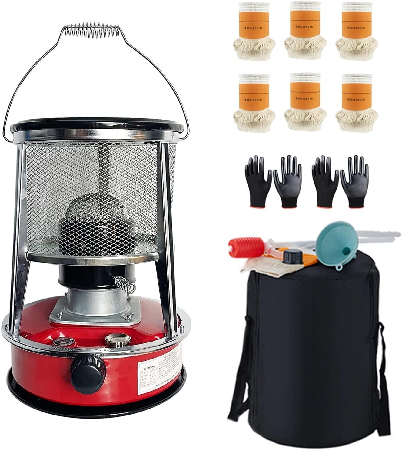 Kerosene Heater with Storage Bag 4.6L Stove Heater Burner Non Electric Kerosene Stove Indoor Burner Camping Oil Heaters with Overheat Protection and 6 Wicks (Color : Red-4.6L)