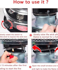 - 【Sicherer Campingkocher】: An der Außenseite des kleinen Petroleumkochers befindet sich ein Schutznetz, das Verbrennungen wirksam verhindern kann. Der Heizkörper hat eine solide Basis, um ein Umkippen zu verhindern. die Sicherheit verbessert wird.