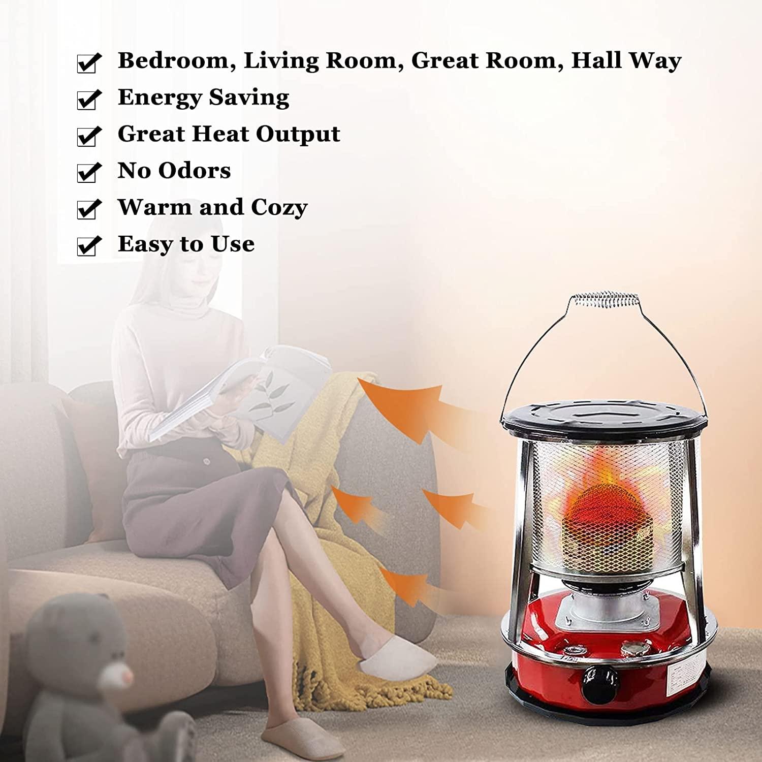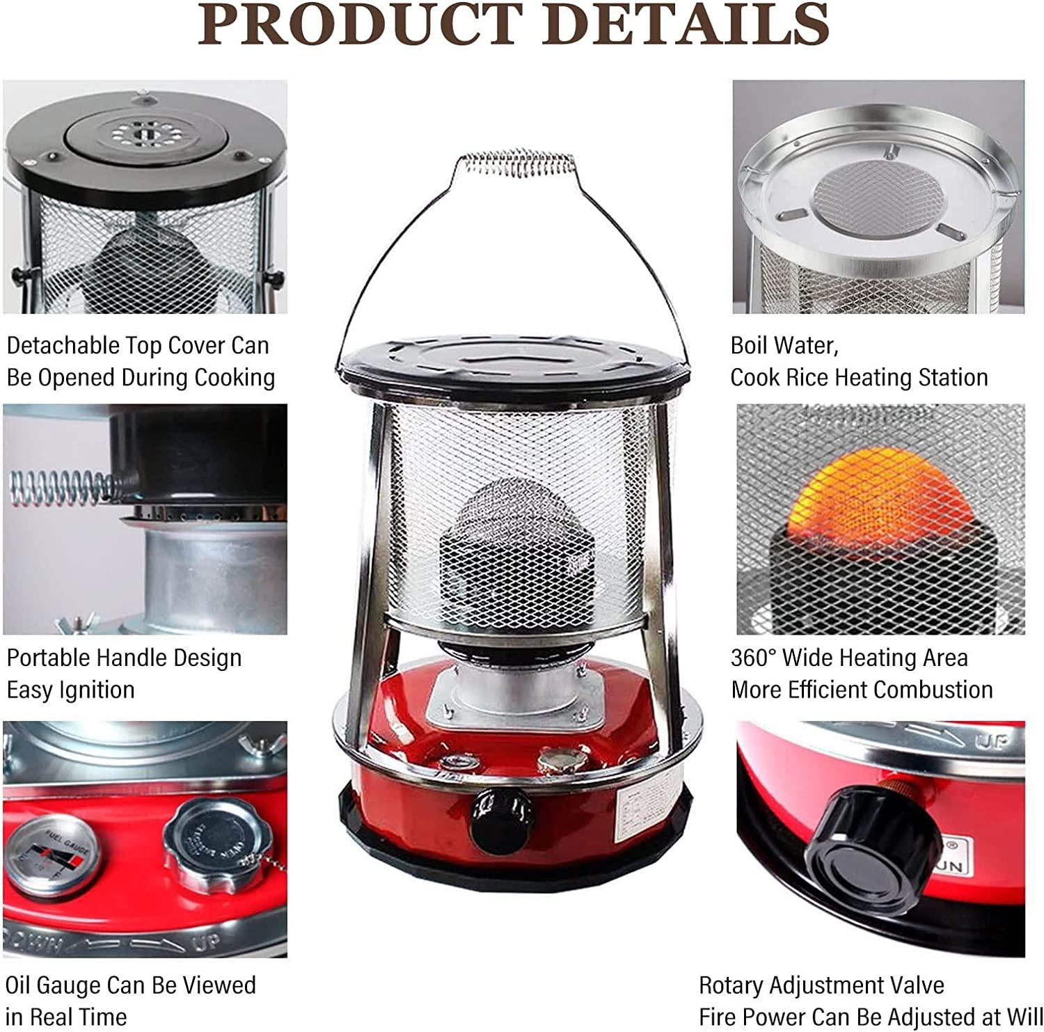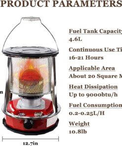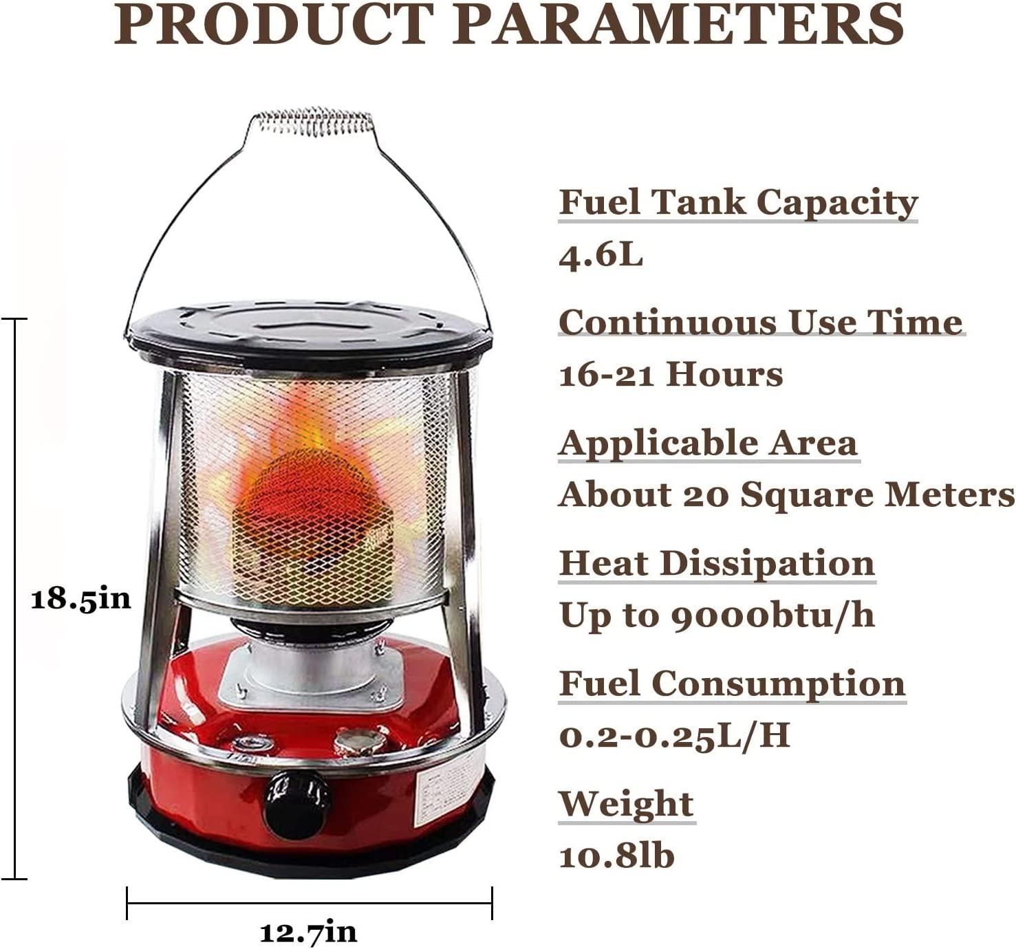 - ✅ Energy saving and safety: Portable kerosene heater without electricity. Don’t worry about power outages due to hurricanes, heavy rain and snow, and use it anytime. The kerosene heater has the characteristics of quietness, no peculiar smell, no oil leakage, and durability. Use with confidence.