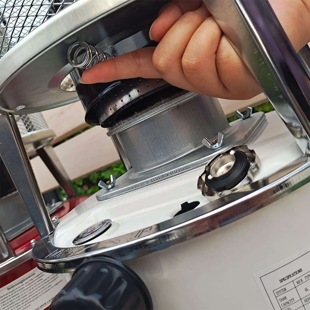 - ☞ Safe camping stove: There is a protective net on the outside of the kerosene stove, which can effectively prevent burns. The kerosene heater has a sturdy base to prevent tipping and an automatic fire extinguishing function for added safety.