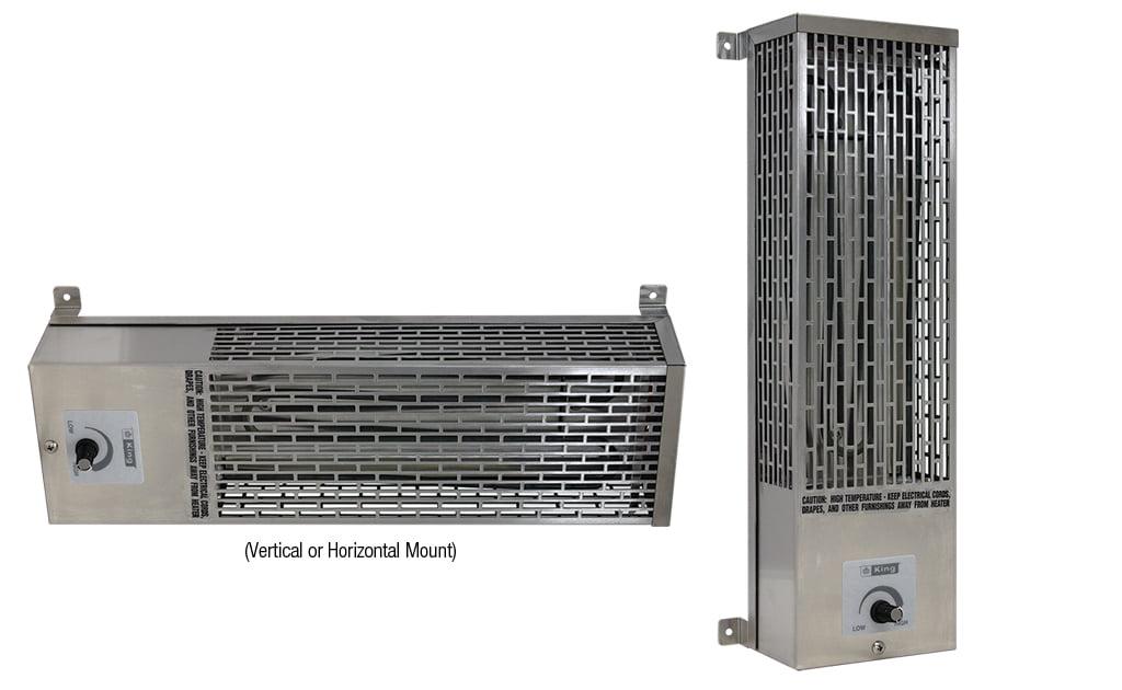 The King Electric U-SS Series heater is designed to reduce moisture from mechanical equipment and keep pumps, valves, and farm machinery from freezing. Having the radiant heat absorbed by the metal equipment makes this heater more effective than convection heaters. Features an Incoloy 840 Superalloy heating element for superior corrosion resistance. The built-in thermostat turns off when the ambient temperature is safely above freezing. The case is made of 304 Stainless Steel to prevent corrosion associated with high moisture locations like pump houses. A stainless steel guard helps keep foreign objects away from the element. This heater is simple and reliable with no moving parts to wear out or maintain, making it an inexpensive choice for freeze protection. Specifically designed to operate in both horizontal and vertical (up to 500W max) positions.