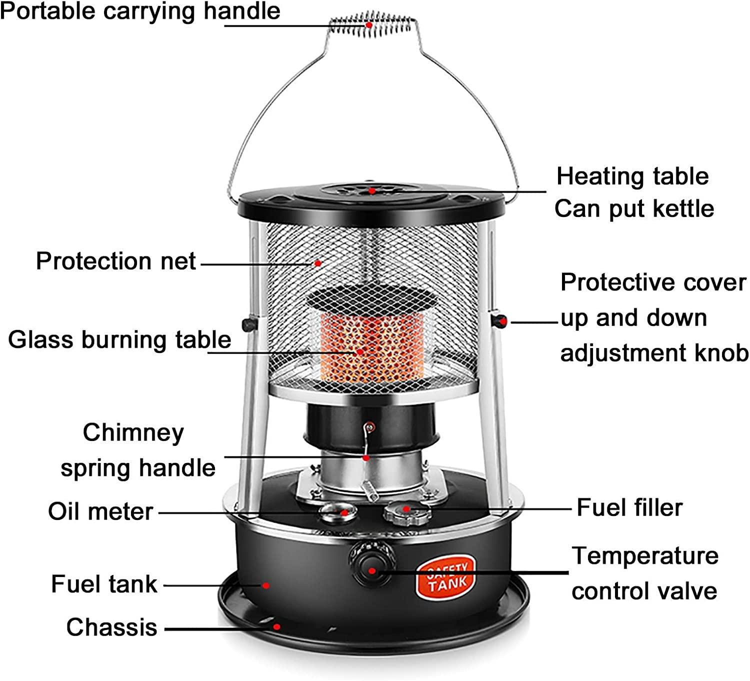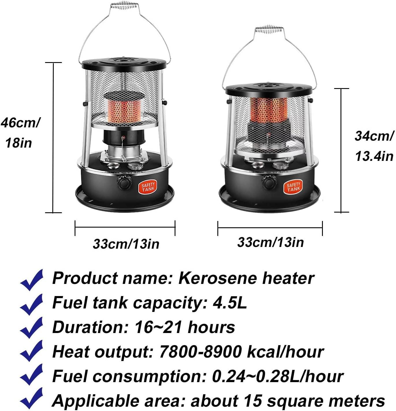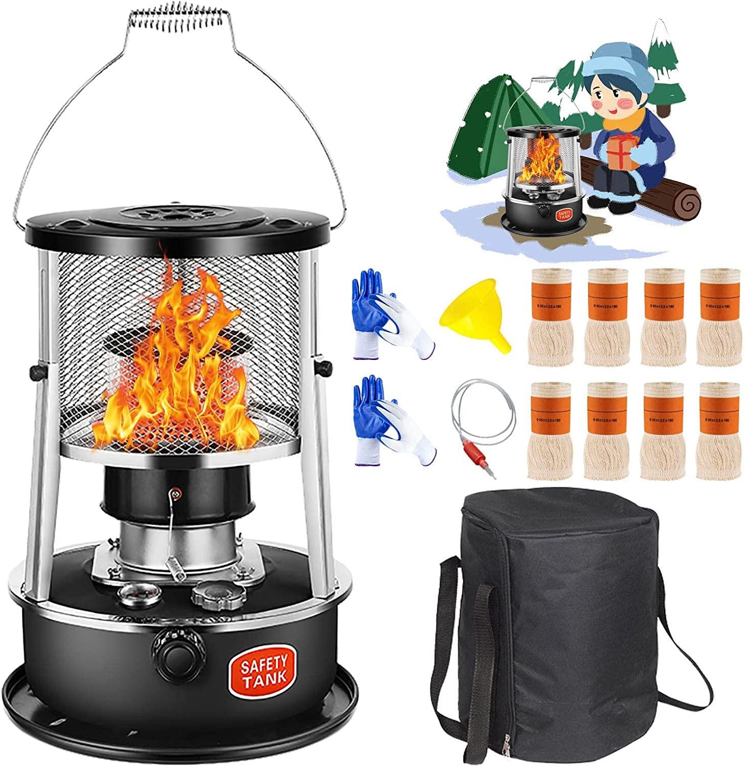 Lake Blue/Black Stainless Steel Kerosene Stove Heaters for Indoor Use, Emergency Heater with Adjustable Protective Cover, Non Electric Heaters for Camping, for Balcony, Garden, Patio or Camping