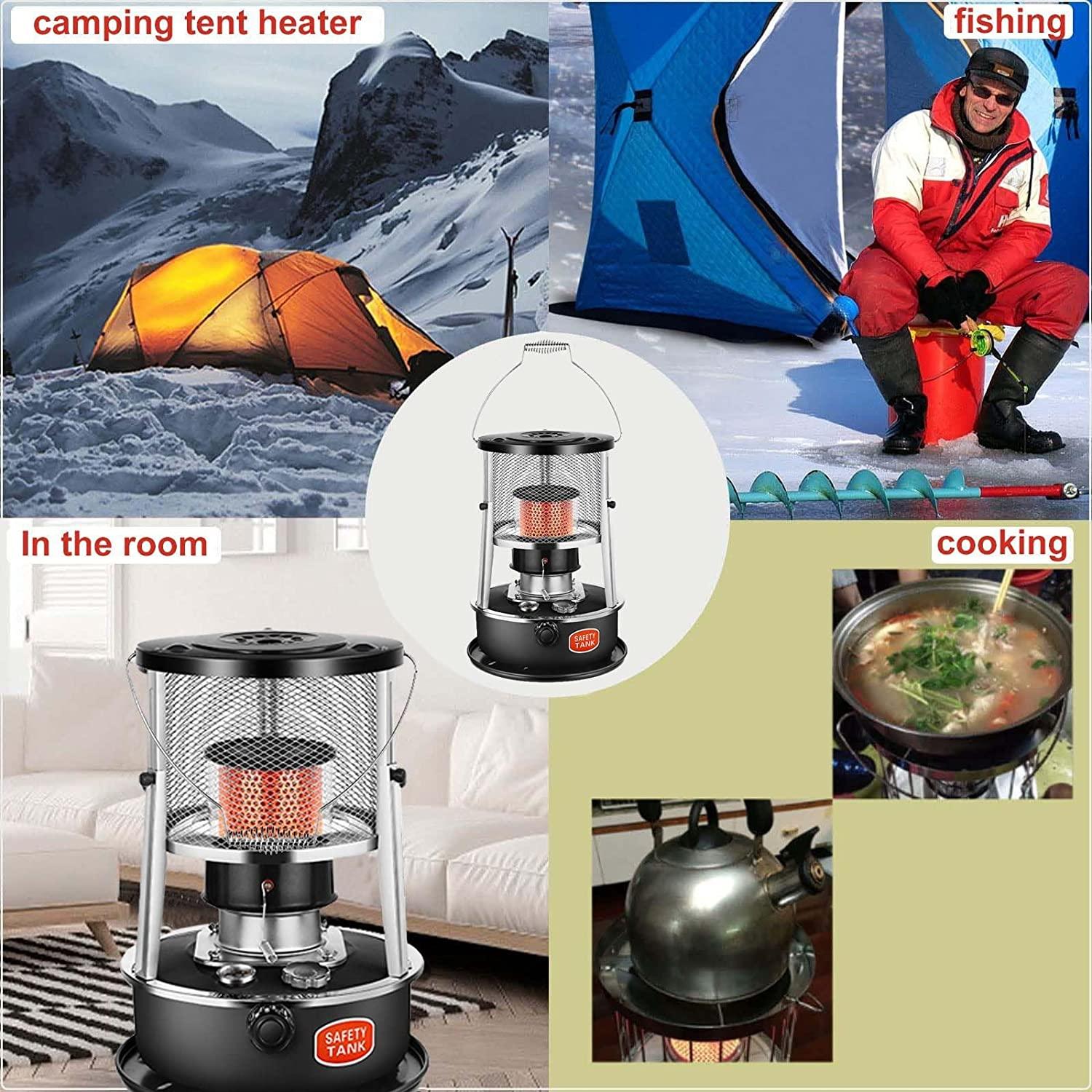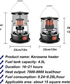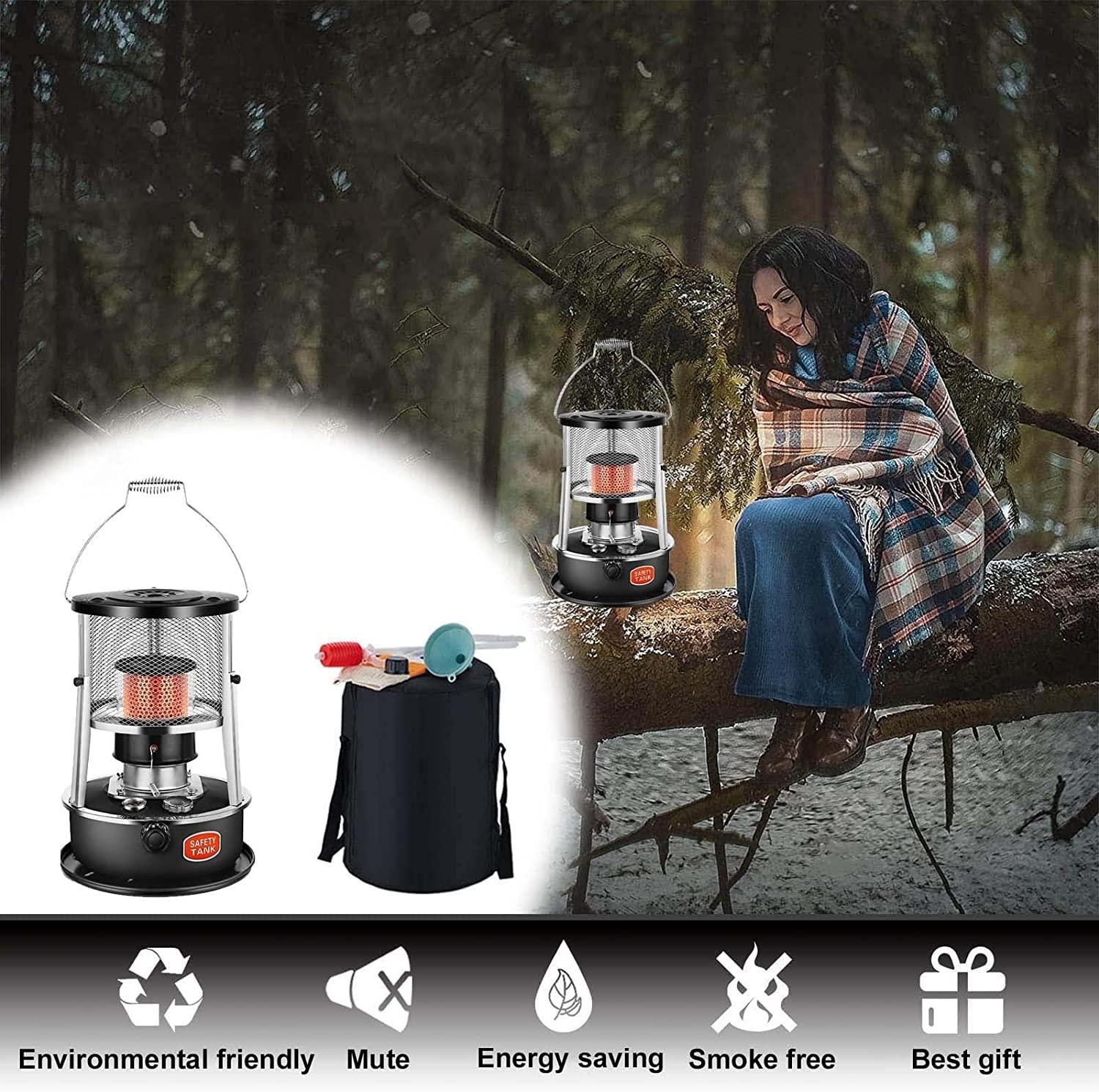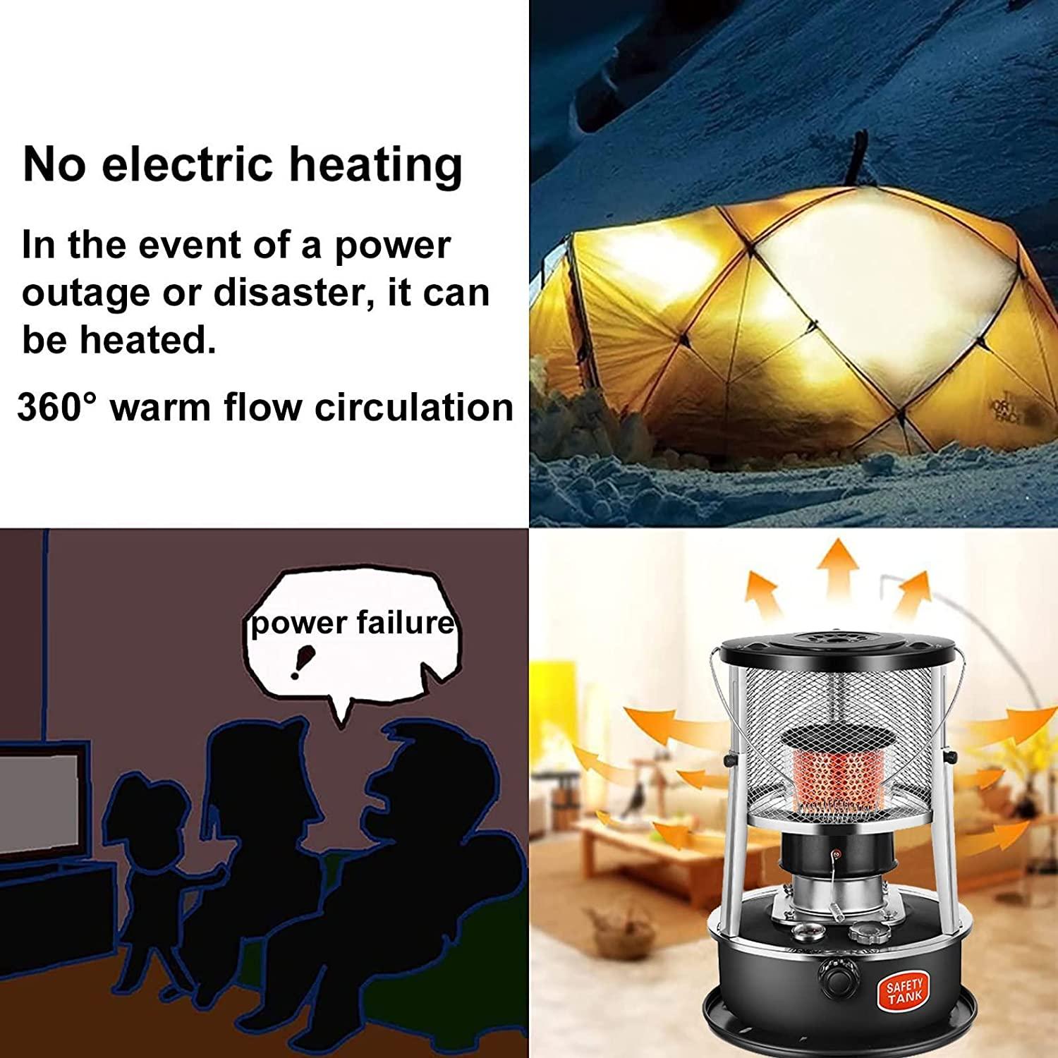 Lake Blue/Black Stainless Steel Kerosene Stove Heaters for Indoor Use, Emergency Heater with Adjustable Protective Cover, Non Electric Heaters for Camping, for Balcony, Garden, Patio or Camping