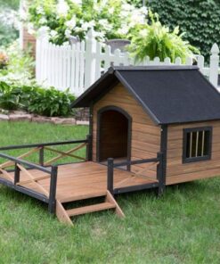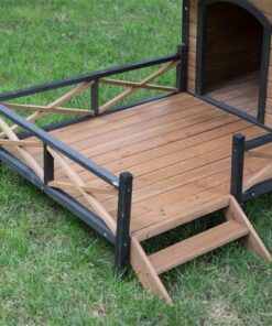 - Large Solid Wood Outdoor Dog House with Spacious Deck Porch