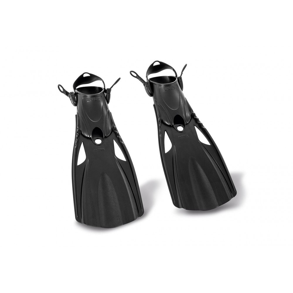 - open foot design with adjustable strap for optimal fit, channels for less resistance and more speed