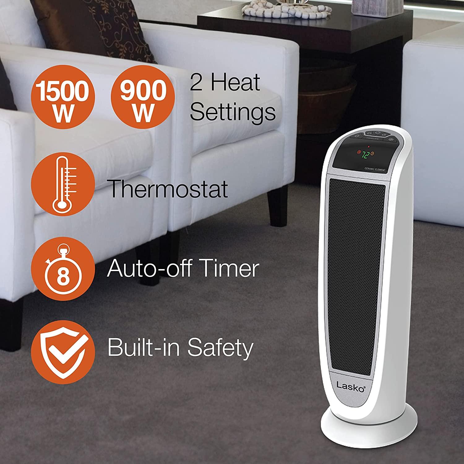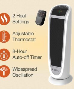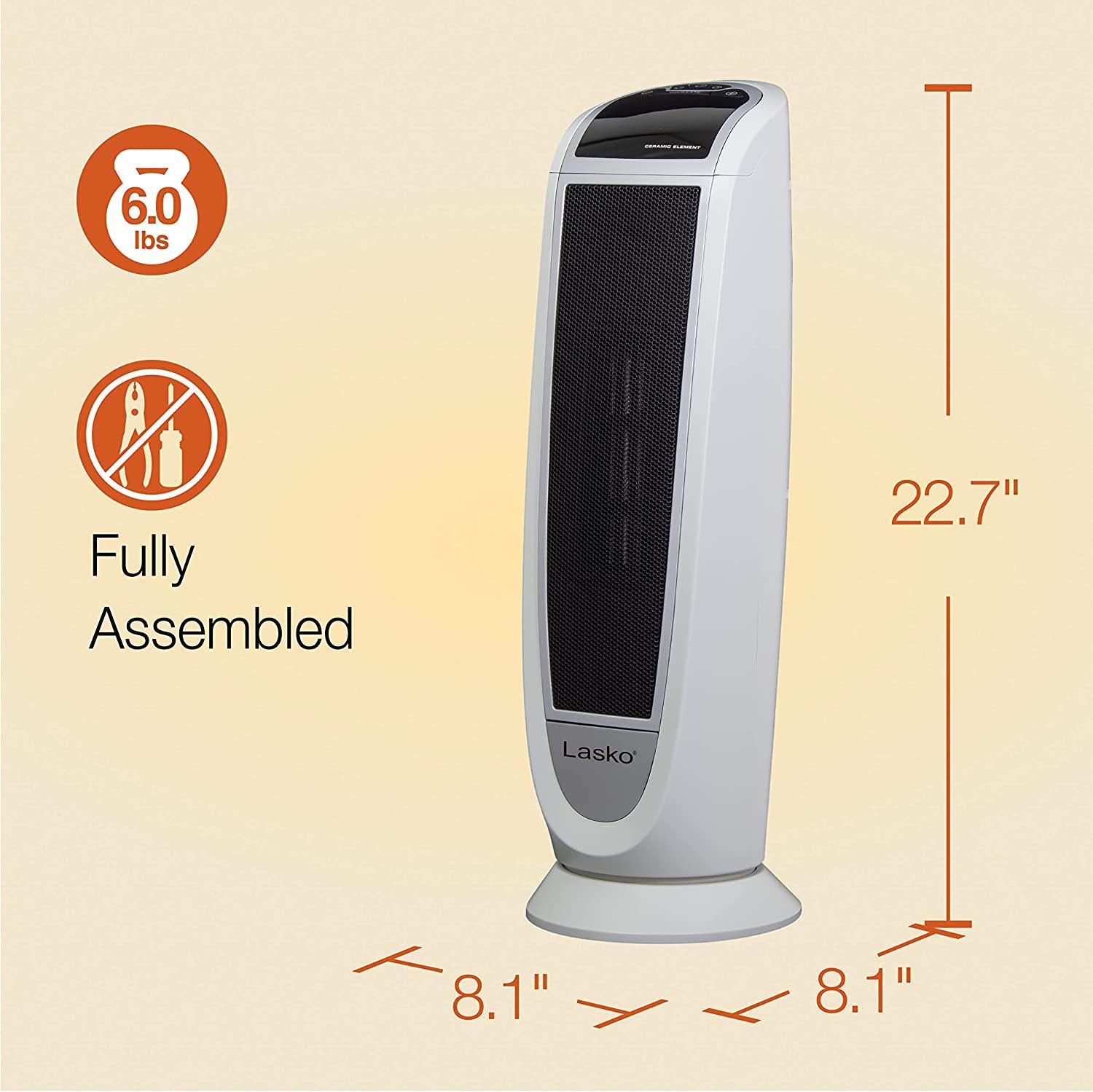- 【Built-in safety】Features overheat protection with a safer ceramic element designed to automatically regulate its operating temperature. The exterior heater housing stays cool to the touch and has a built-in carry handle, so you can move it safely from room-to-room. This heater is ETL listed and complies with North American safety standards. This tower space heater stands 22.76 inches H and 8.13 inches wide/deep — a perfect size for the bedroom, home office, living room, or almost any room in the home