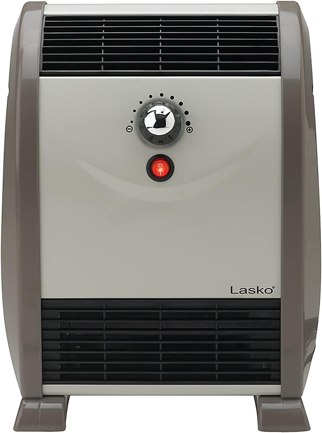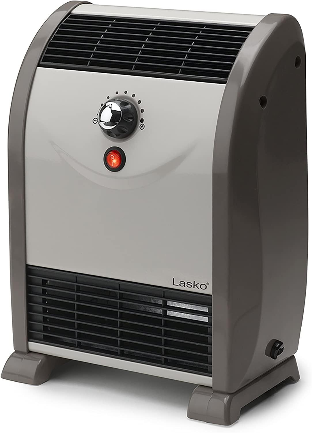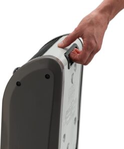 - Thermostat-control knob and illuminated power switch. automatic overheat protection; tip-over safety switch. Measures 14″ X 6″ X 11.5″ tall