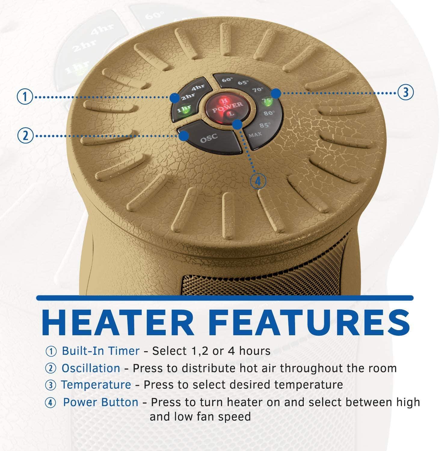 - Built-in Safety Features – overheat protection ensures the space heater does not overheat even if left on for an extended amount of time. While a cool touch exterior keeps the heater cool to the touch even after running for hours