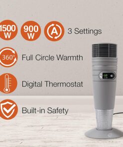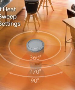 - 3 Heat Sweep Settings – allows this space heater to distribute warm air throughout large rooms. The full circle design allows you to select 90, 170, or full 360 degree coverage. While an easy to clean filter ensures the heater runs efficiently.