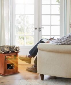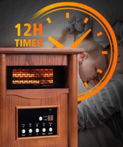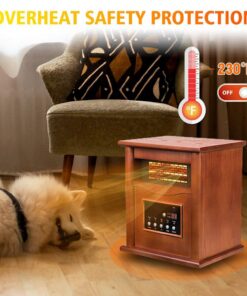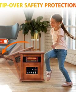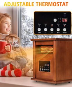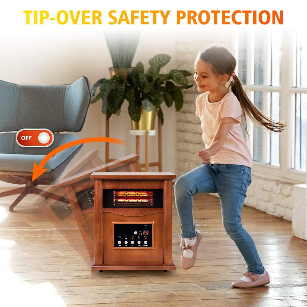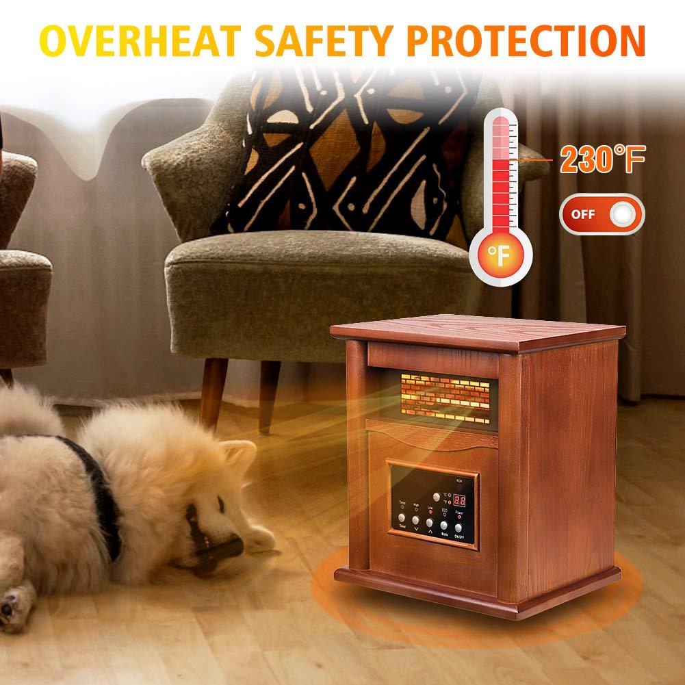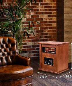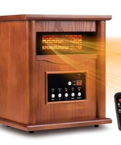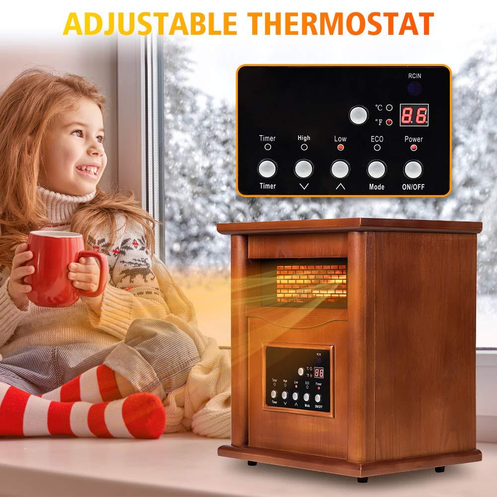 LifePlus Electric Infrared Heater Portable Wood Cabinet with Remote Control Thermostat Energy Efficient for Indoor Use Home
