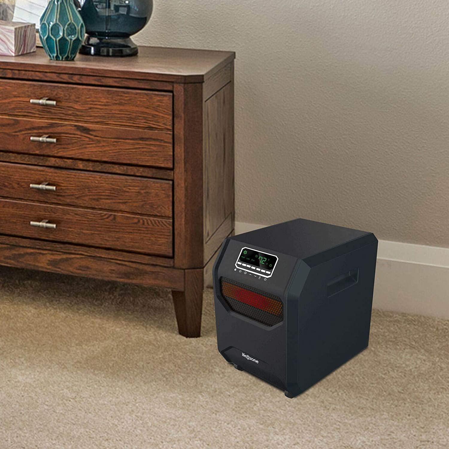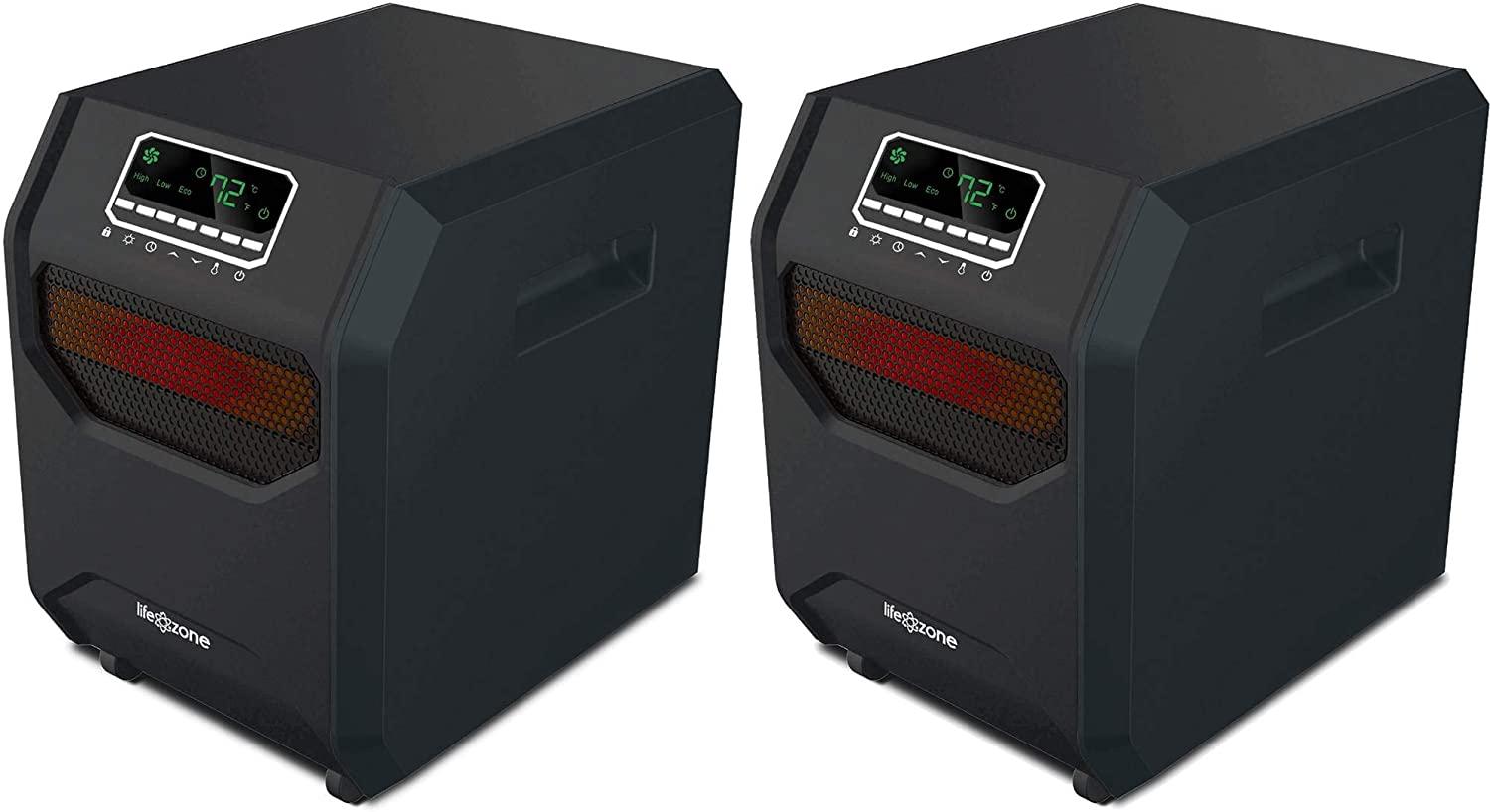 Lifesmart 4-Element Quartz Infrared Portable Large Room Electric Space Heater with 3 Heat Power Settings, Black (2 Pack)