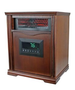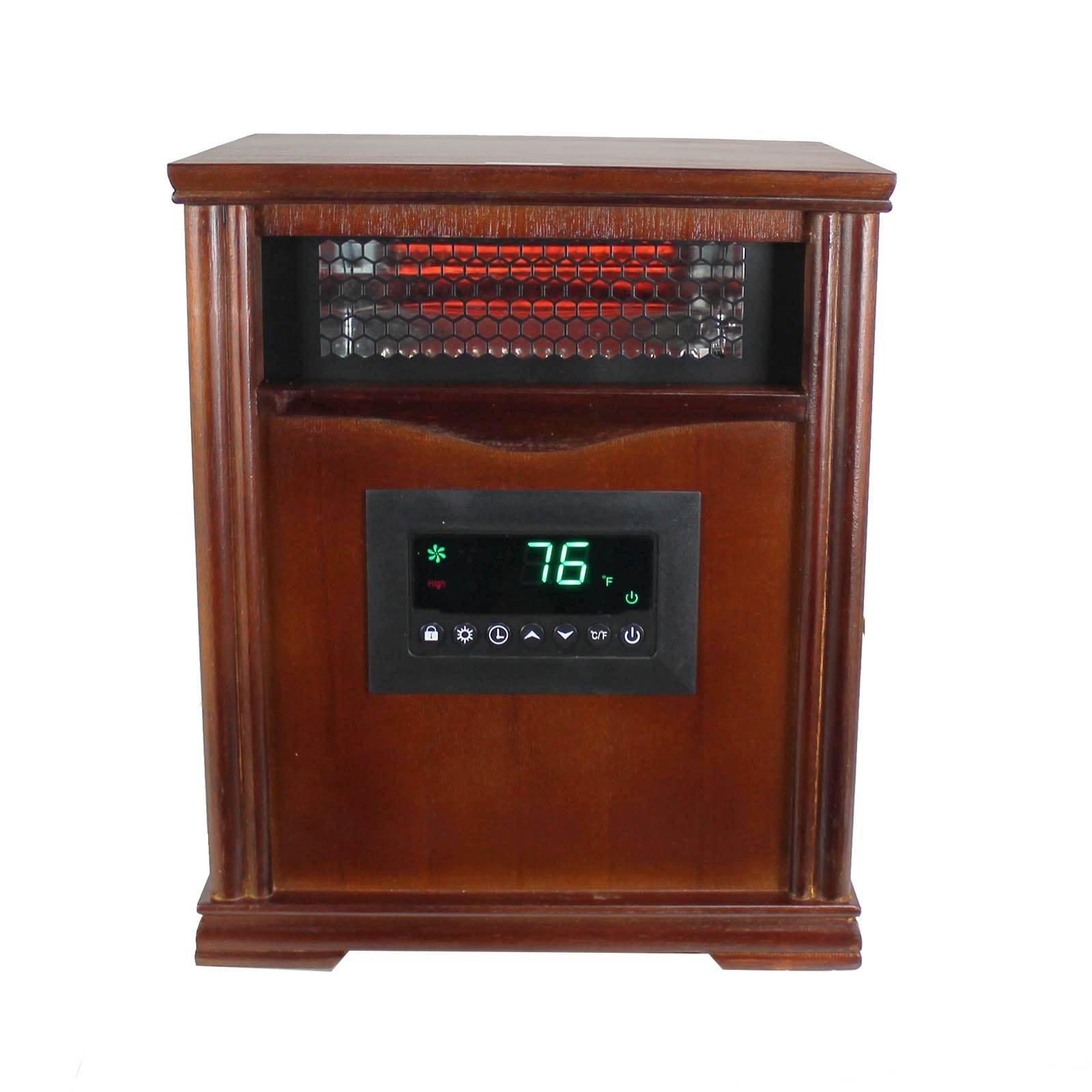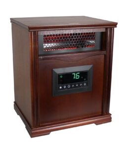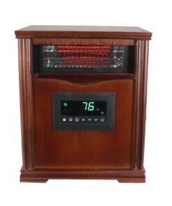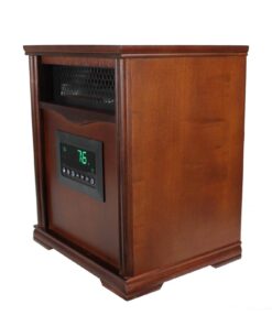 - Furniture-grade wood cabinet gives this heater a sleek look