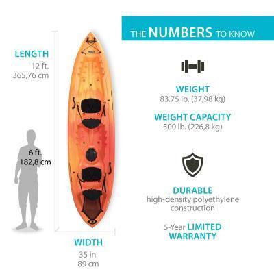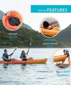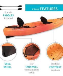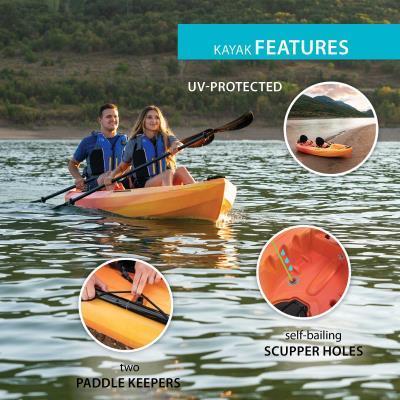 Rear Tankwell with Cargo Net Lacing for Storage Two Paddlekeepers to Secure Your Paddles to the Kayak 5-Year Limited Warranty Adjustable Padded Seat Back and Seat Pad for Comfort with Quick-Release Attachments UV-Protected High-Density Polyethylene (HDPE) Construction Skeg Wheel for Enhanced Tracking and Easy Transportation Kayak Paddle Included Hatch for Added Storage Beneath the Deck Paddle Included Four Carry Handles to Assist in Transport Molded-In Freedom Footwells for Comfort and Secure Foot Bracing