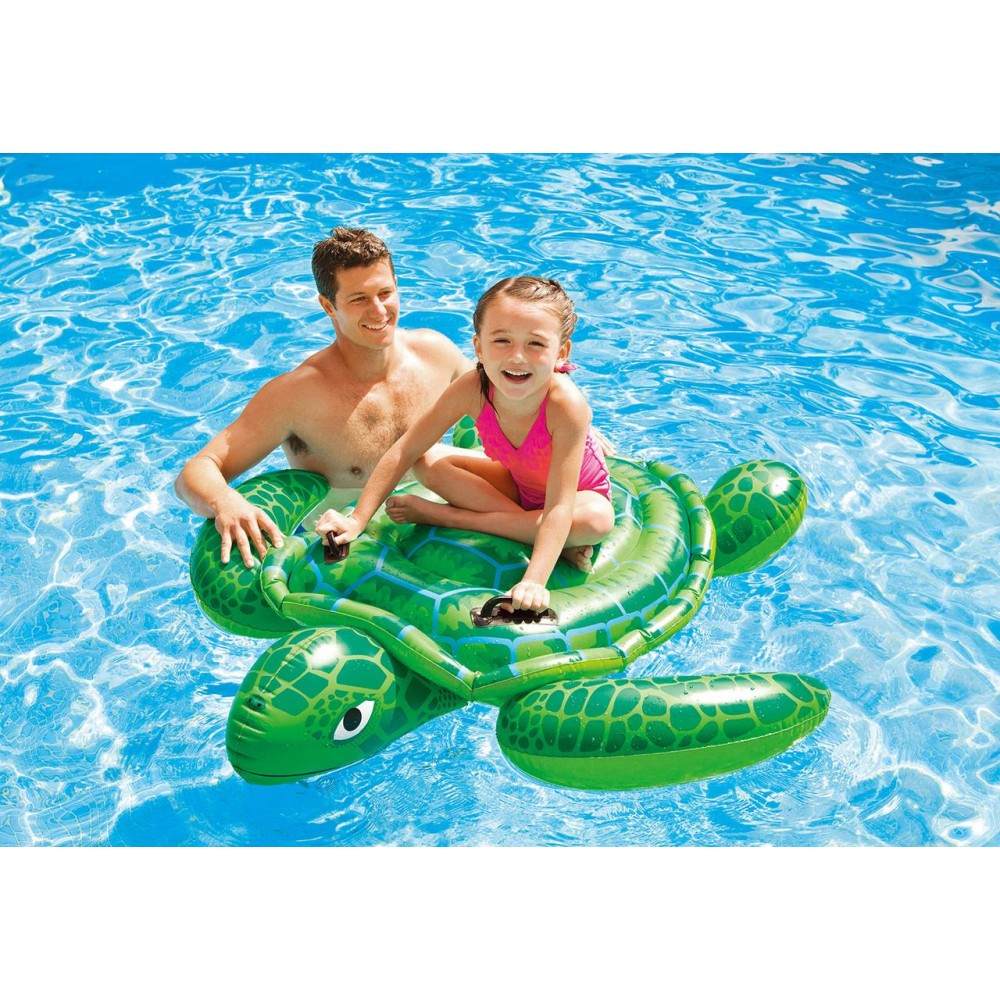 Enjoy a pool time adventure while splashing around on an Intex Lil’ Sea Turtle Ride-on float! This fun float is designed with heavy-duty grab handles to hold on tight, for a fantastic time in the pool.