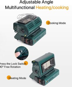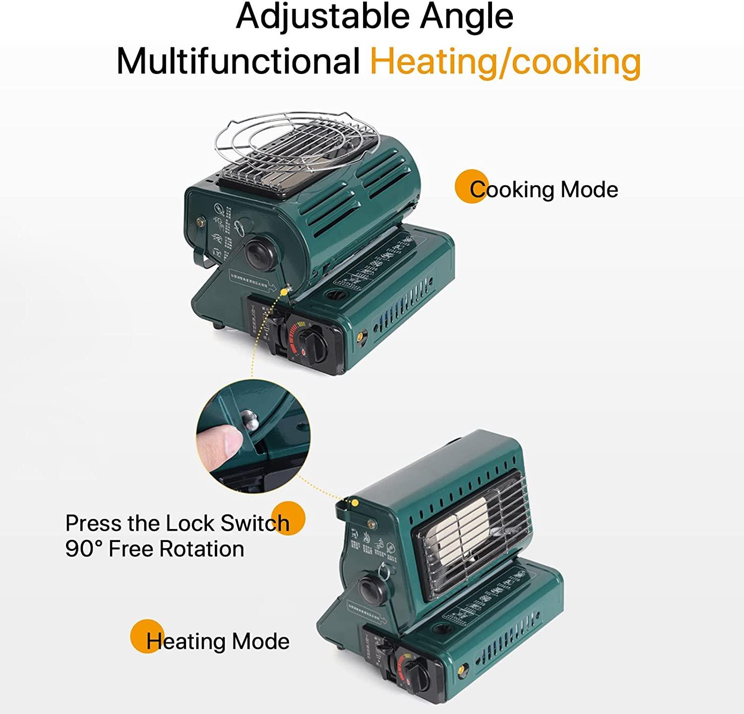 - ▲Adjustable angle design, both for heating and cooking during camping. Press the lock switch to rotate ly at 90°. The two modes can be switched ly. If you do outdoor activities, it will be your good companion.