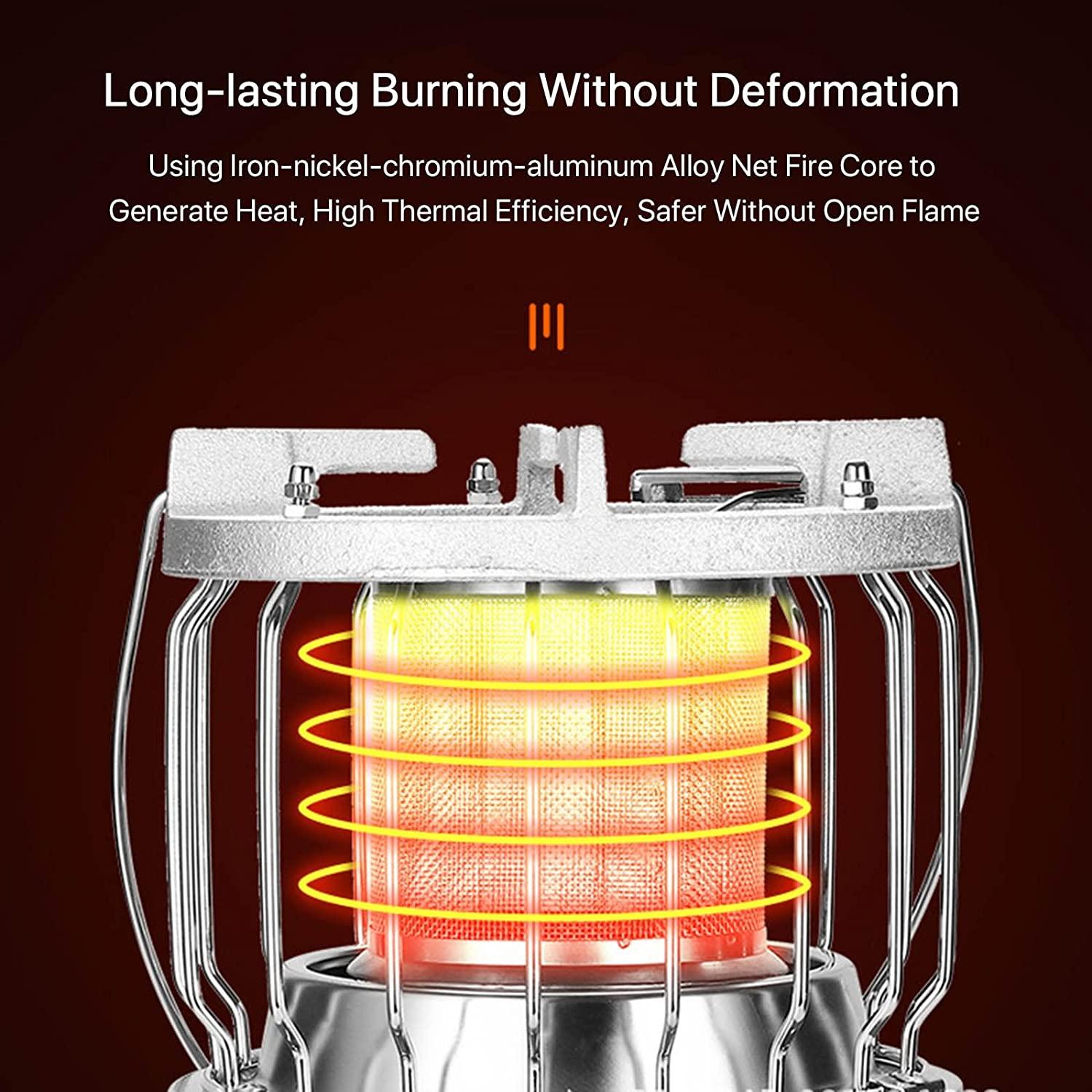 - ◆Adopt aviation aluminum material, rust-proof and corrosion-resistant. long lasting. Far red heating element, high-efficiency ceramic plate, faster heat absorption speed, higher temperature, no open flame, very safe. Let you not be afraid of the cold.