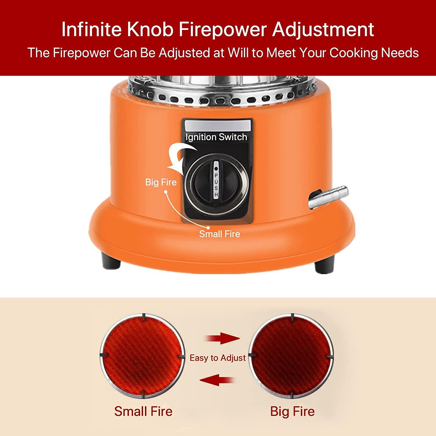 - ◆The pulse ignition device can ignite 50,000 times and is durable. Can be connected to butane/propane. Suitable for outdoor travel/camping/picnic/ice fishing/yard party/beer garden/tent party/terrace/garage etc.