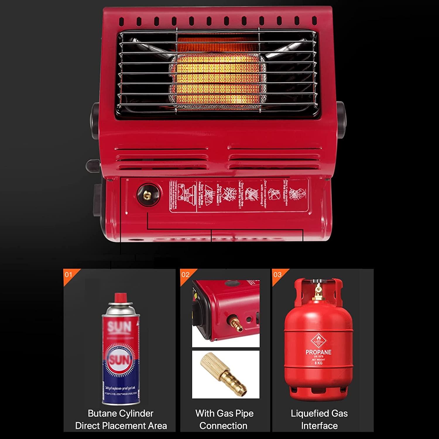 - ●Small and portable multifunctional heating stove, dual-purpose design, can directly use box-type butane gas cylinders or household natural gas cylinders, convenient, simple and more user-friendly.