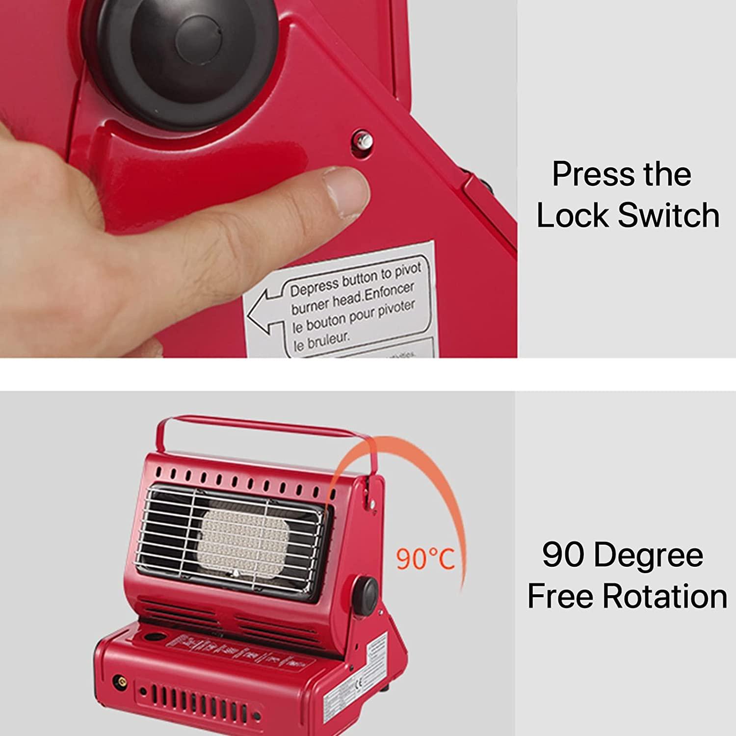 - ●Adjustable angle design, press the lock switch to ly rotate 90°. The two modes can be switched ly. Not only can you keep warm when camping, but it also has a shelf. You can also boil water/cook. If you do outdoor activities, it will be your good companion.