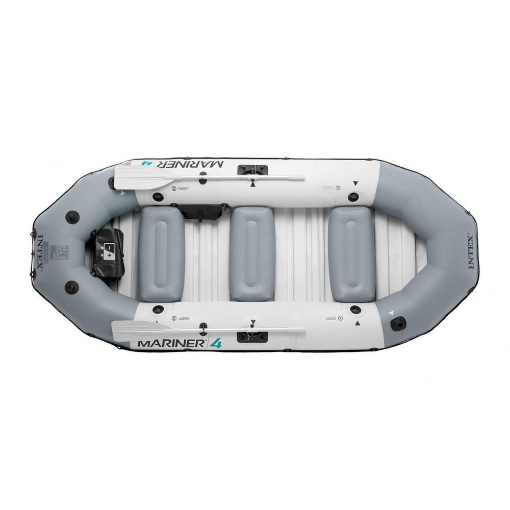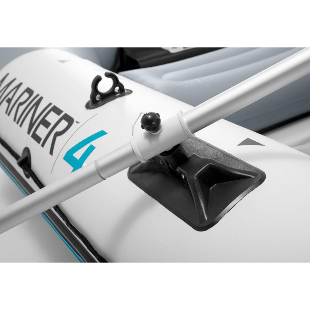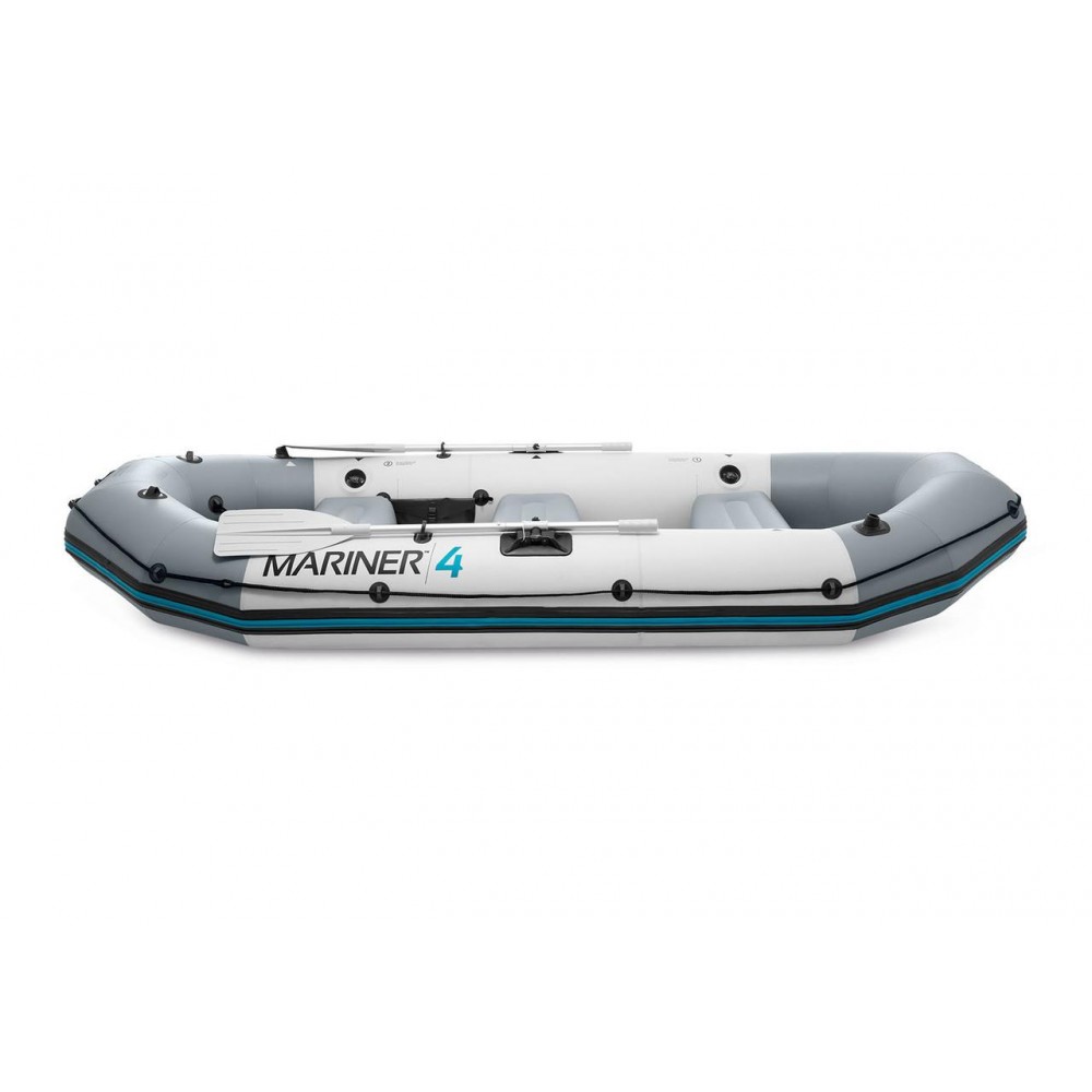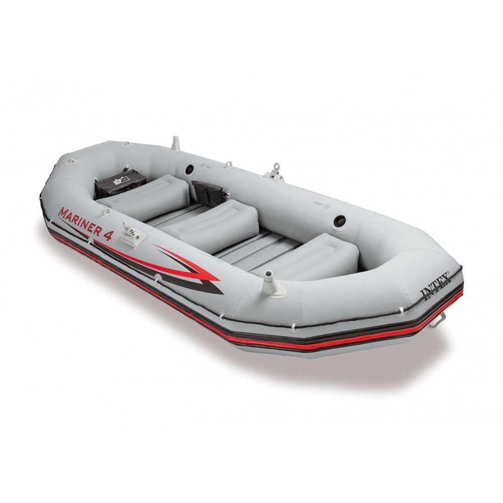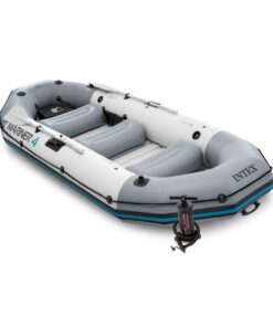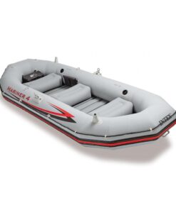 The Intex MarinerTM 4 inflatable boat is constructed for supreme strength and durability with SUPER TOUGH PVC. This material is comprised of three separate layers – two outer layers of heavy-gauge PVC laminated to an inner layer of polyester mesh for extra reinforcement. Great for boating or fishing with friends, this roomy Pro Series boat is designed for three adults. Extra reinforcements include a keel rock guard and heavy-duty, extruded plastic flooring for stability and rigidity.