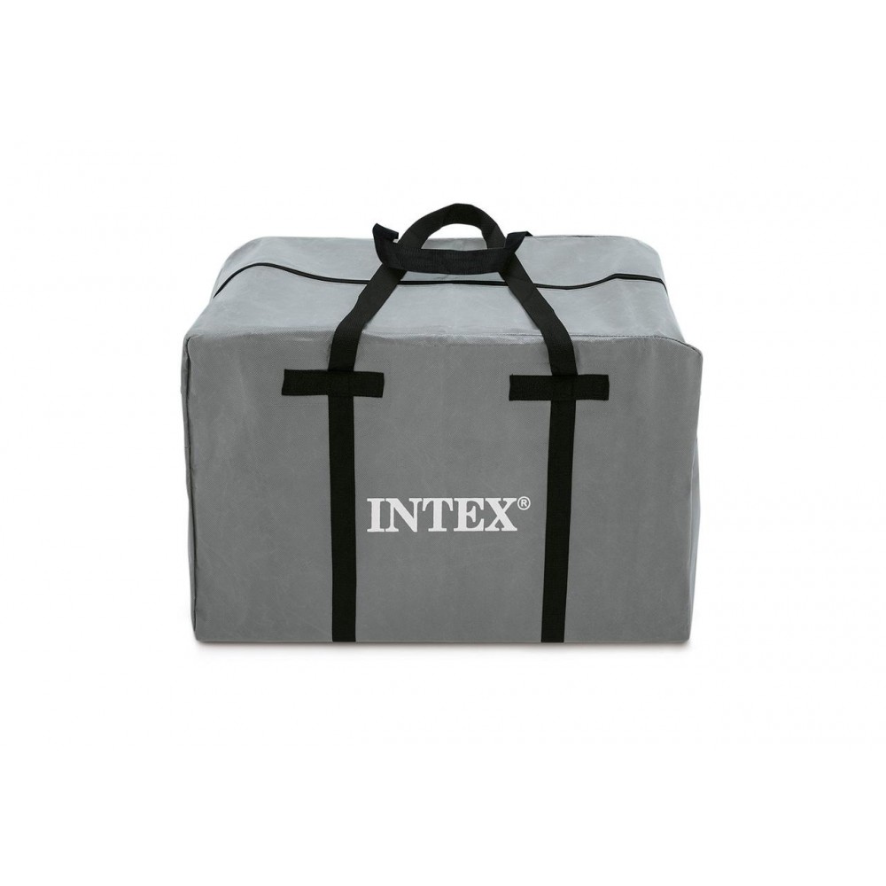 Inflating or deflating is a breeze with two Boston valves on the main hull chamber. Fishing and relaxing have never been easier with two built- in fishing rod holders and gear pouch. Motor mount fittings and a battery pouch are included for the flexibility of adding the Intex motor bracket and trolling motor. Two grab handles on each bow and an all-around grab line are provided for your convenience, as well as oar holders and rotational oar locks, a U.S. Coast Guard I.D., and a repair patch kit. Also included are two 54-in aluminum oars and an Intex high-output pump for easy inflation and deflation.