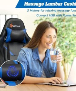 - 【Ergonomic Design for Maximum Comfort】The armrest can be adjusted in height or rotated 60 ° to the left or right for extra comfort. Designed with removable headrest and electric massage lumbar pillow, the gaming chair can effectively relieve pressure on your neck and waist.